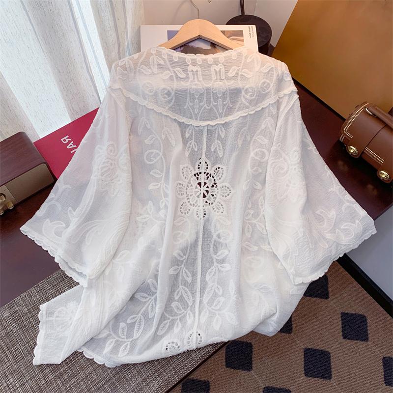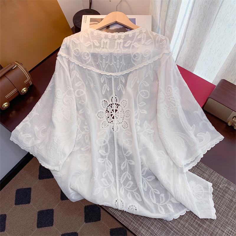 DIMANAF 2025 Лето Женщины Кружевной Праздничный Кардиган Футболка Базовые Новые Модные Топы Кружевные Футболки Повседневные Свободные Футболки