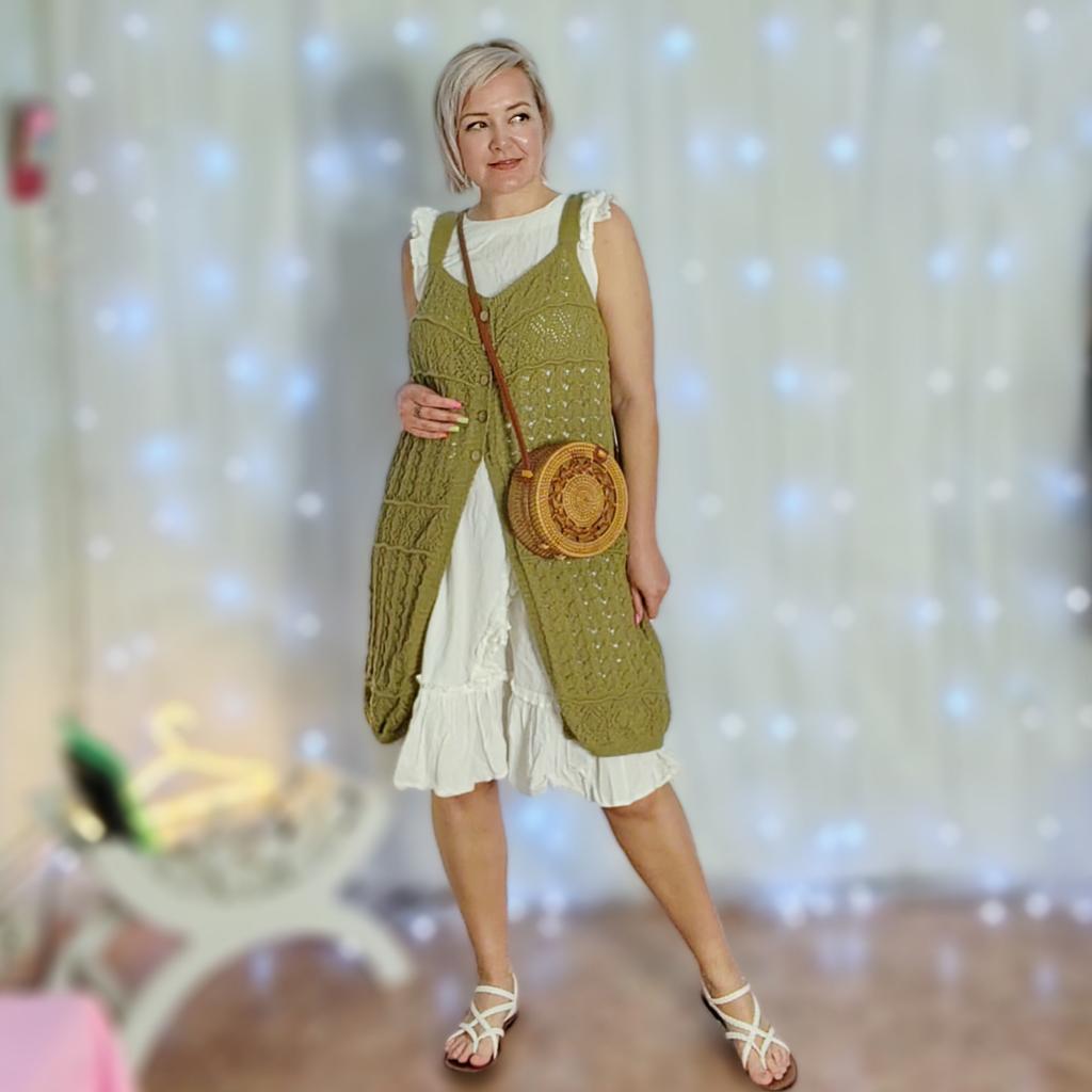 Платье - сарафан - накидка! Привет! Оригинальное платье, которое можно использовать для многослойного образа. Создано для стильных образов! ‼️Добавила разговорное видео посмотрите перед покупкой там больше деталей ‼️ Ткань : Я думаю это акрил, но приятный нежный, хорошо тянется. И даже немного тяжеленький 😉 Дизайн : Мы имеем с Вами сарафан на пуговках. Носить его самостоятельно не получится, хотя бы из за его пошива, спереди есть приличный разрез. С чем же его носить? - платье - шорты - штаны - разные комплекты - купальники Вообщем Вы поняли?! 😏 Размер: На мне единый размер. Мои параметры : рост 172 см 98/76/106 см Детали : Длина 101 см ОГ 116 до 144 см ОТ 110 до 154 см Резюмирую: Очень классная вещь! Умеет создавать многослойных образы и придавать Вашим образами уникальность и изюминку. Рекомендую 👍 Я не прощаюсь, M_K #сарафан_на_платье