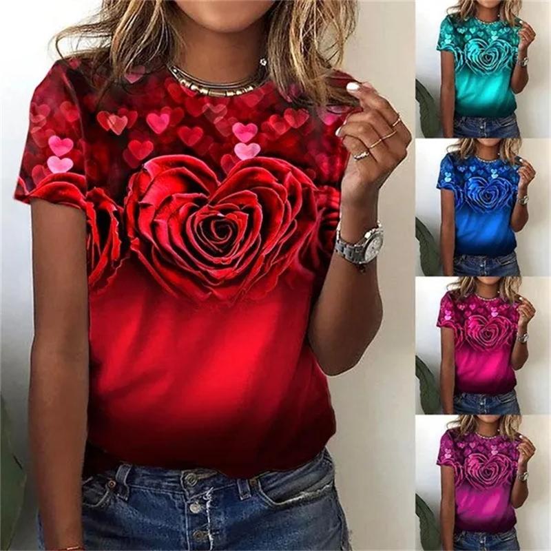 Летняя женская футболка, модные топы с короткими рукавами, повседневная футболка с круглым вырезом и 3D цветочным принтом для женщин, одежда Y2k, свободные футболки, топы — купить товар онлайн с бесплатной доставкой по всему миру!