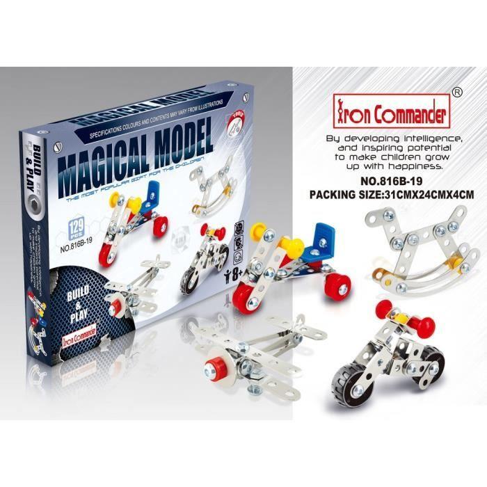 Jeux de construction - Set de 4 modèles à monter : cheval à bascule, avion, moto, vélo - 129 pièces - outils inclus Iron Commander