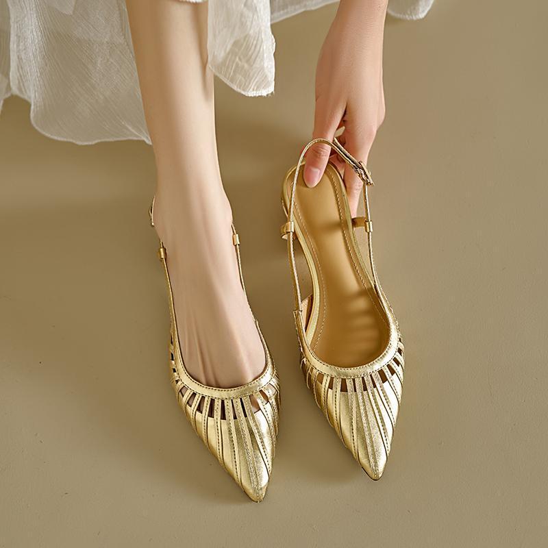 Новые весенне-летние женские туфли на каблуке с острым носком и ремешком, золотисто-серебряные босоножки на высоком каблуке, универсальные туфли с открытой пяткой на высоком каблуке