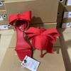 Женские туфли с красным атласным бантом, прямой ремешок, квадратный носок, тонкий каблук, высокий каблук