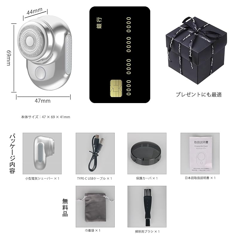 [Маленькая бритва, идеально подходящая для подарков] Маленькая бритва, которая меньше трех четвертей длины и ширины банковской карты.. Не только для домашнего использования, но и очень удобно носить с собой, подходит для деловых поездок, путешествий, офиса, а также для использования на открытом воздухе и в других местах.. Низкий уровень шума позволяет бриться, не мешая окружающим.. Поставляется в подарочной коробке, что делает его идеальным подарком.. На электробритву распространяется гарантия сроком на один год с даты покупки.. Если у вас возникли какие-либо проблемы с продуктом, пожалуйста, свяжитесь с нами.