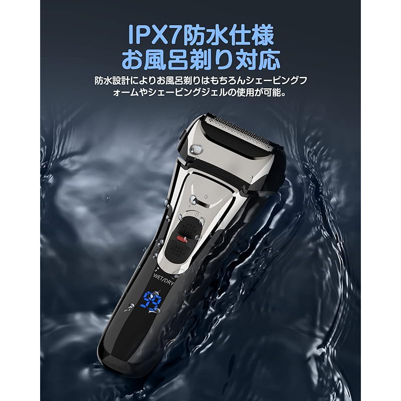 [Бритье в ванной и совместимость с влажным/сухим бритьем] Электробритва имеет полностью водонепроницаемую конструкцию, соответствующую стандартам IPX7 *1, поэтому ее можно использовать не только для комфортного сухого бритья, но и для бритья с гелем и пеной, что снижает нагрузку на кожу.(*1 Стандарт IPX7: Даже при погружении в воду на глубину 1 метр на 30 минут не произойдет попадания воды в количестве, которое могло бы вызвать вредные последствия.)