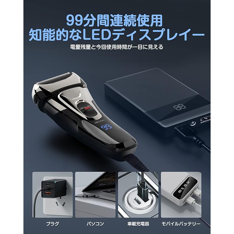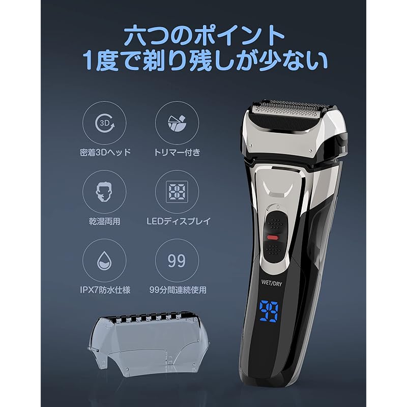 [Светодиодный дисплей/Долгое время работы] Светодиодный дисплей позволяет с первого взгляда увидеть оставшееся количество электроэнергии, статус зарядки и текущее время использования. Высокопроизводительная литий-ионная батарея позволяет использовать его чрезвычайно долго, около 99 минут при полной зарядке. (120 минут).Если бриться по 3 минуты за раз, то срок службы бритвы составит до 33 дней.