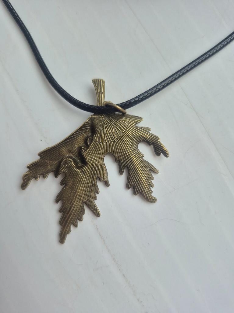 Очень оригинальное украшение. Размер в точности как на фото и бронзовый цвет тоже. Красиво смотрится на шее. Всем кто видит хочется развернуть листочек. Спасибо продавцу, очень нравится, довольна покупкой.