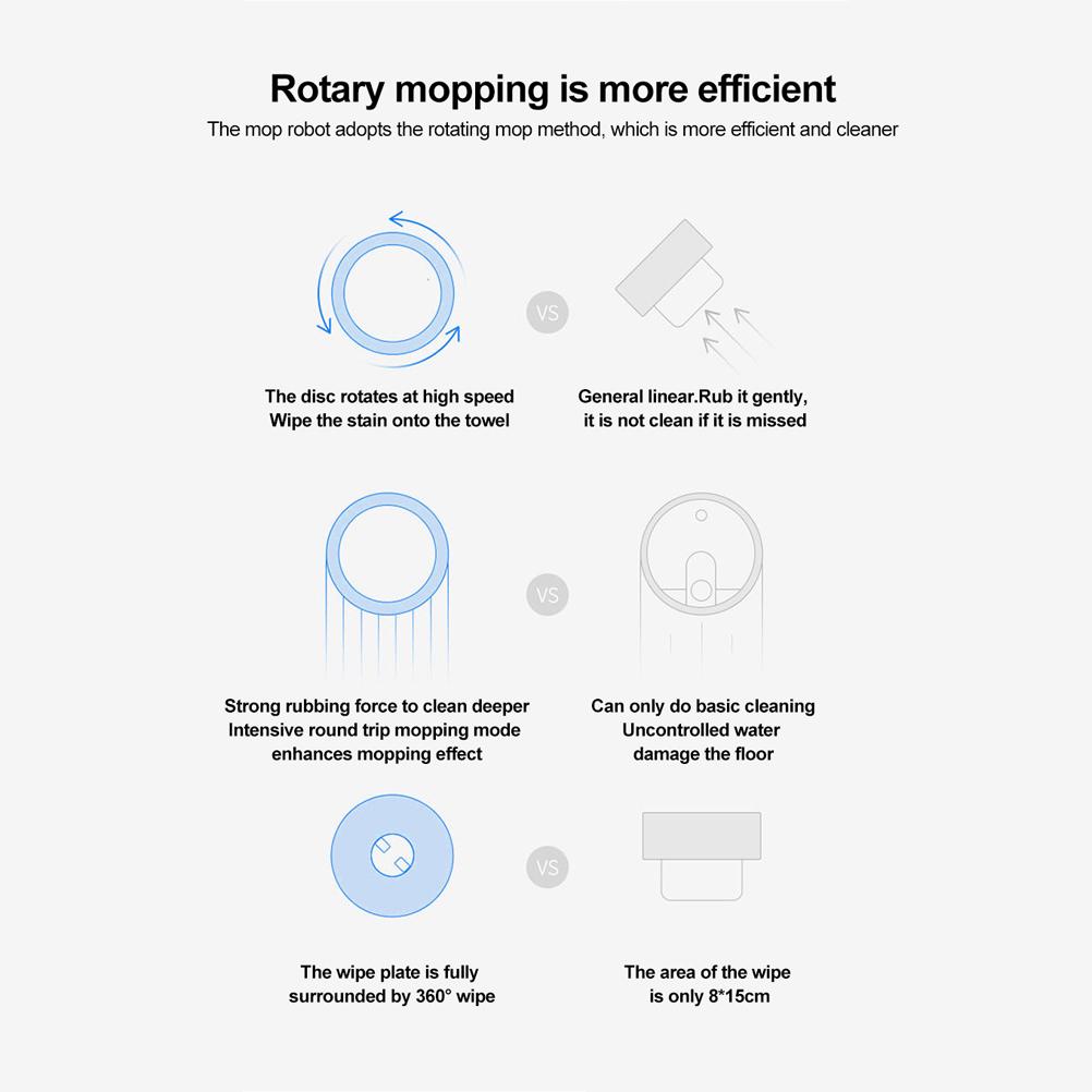 5. 5. Автоматическая уборка, столкновение, разворот, низкий уровень шума, наслаждайтесь тихой жизнью. Подметальная машина включает автоматическую очистку, предотвращает поворот рулевого колеса, работает бесшумно и не мешает вам во время уборки.