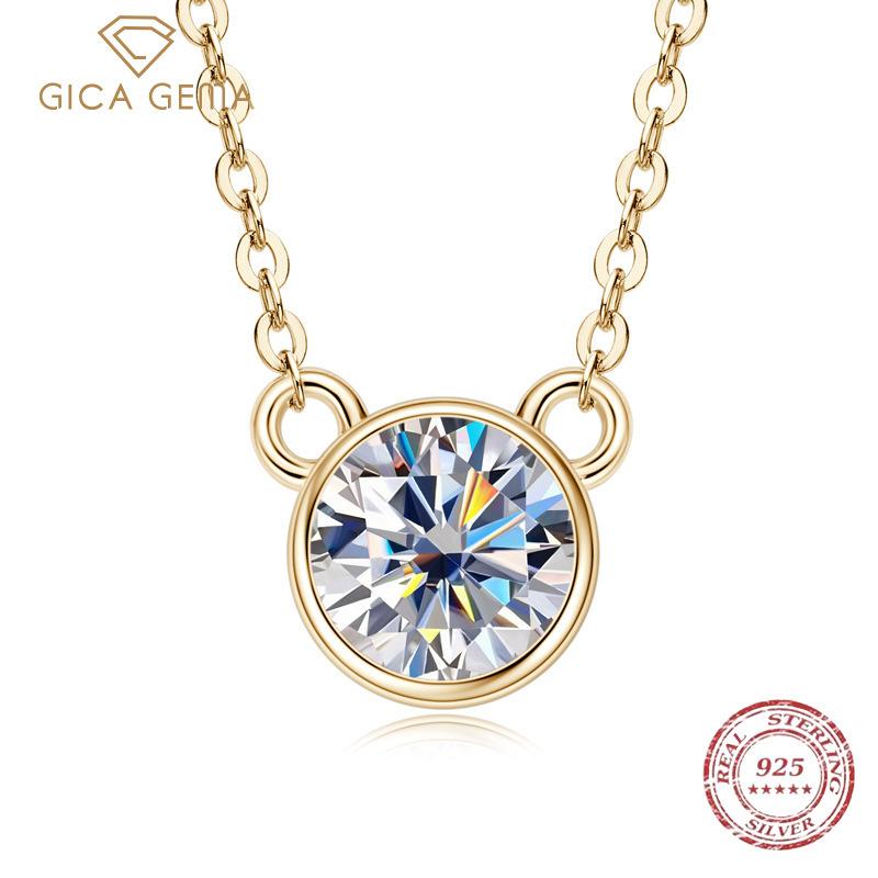 Gica Gema Ожерелье из стерлингового серебра S925 пробы с муассанитом 1 карат, маленькая подвеска-пузырь Sense Bear, серебряные ювелирные изделия