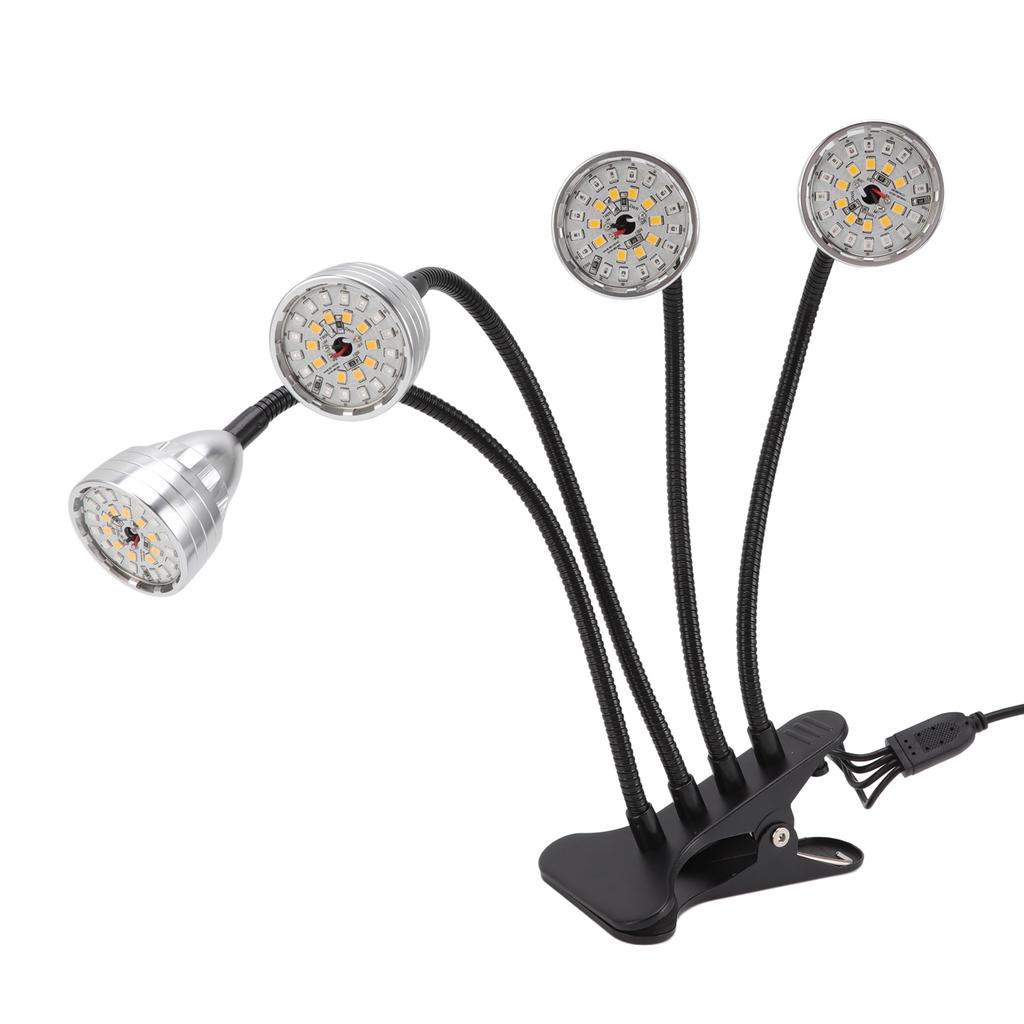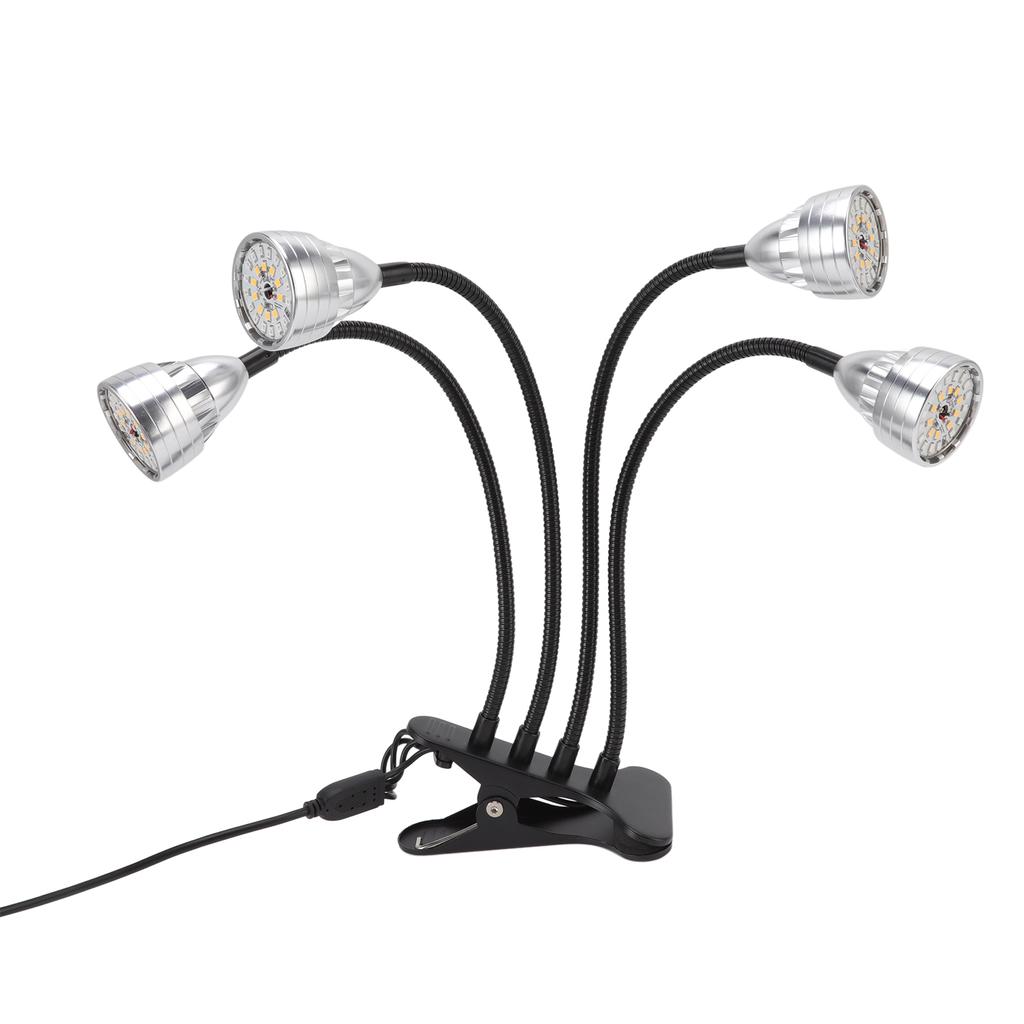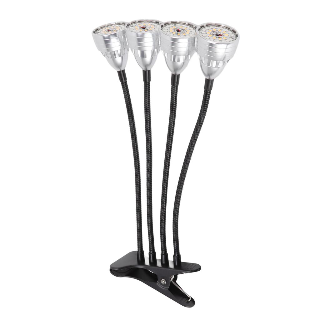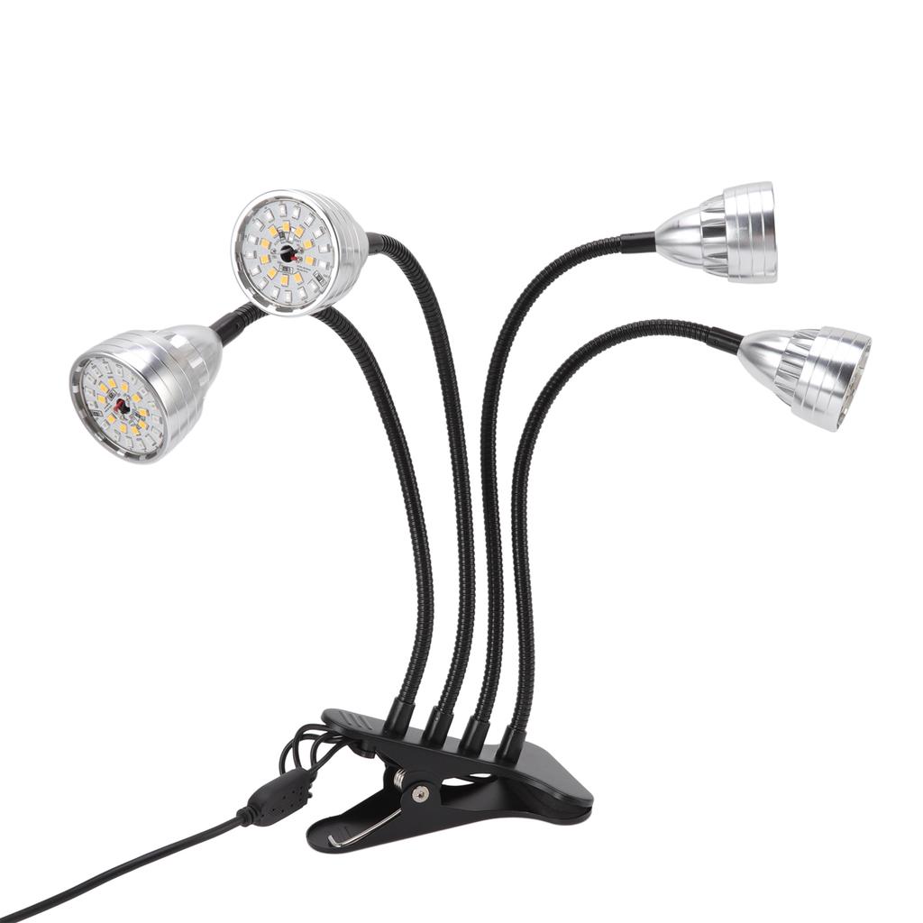 Светодиодный светильник для выращивания растений из алюминиевого сплава с 4 головками, гибкий, регулируемый, USB, с зажимом для помещений