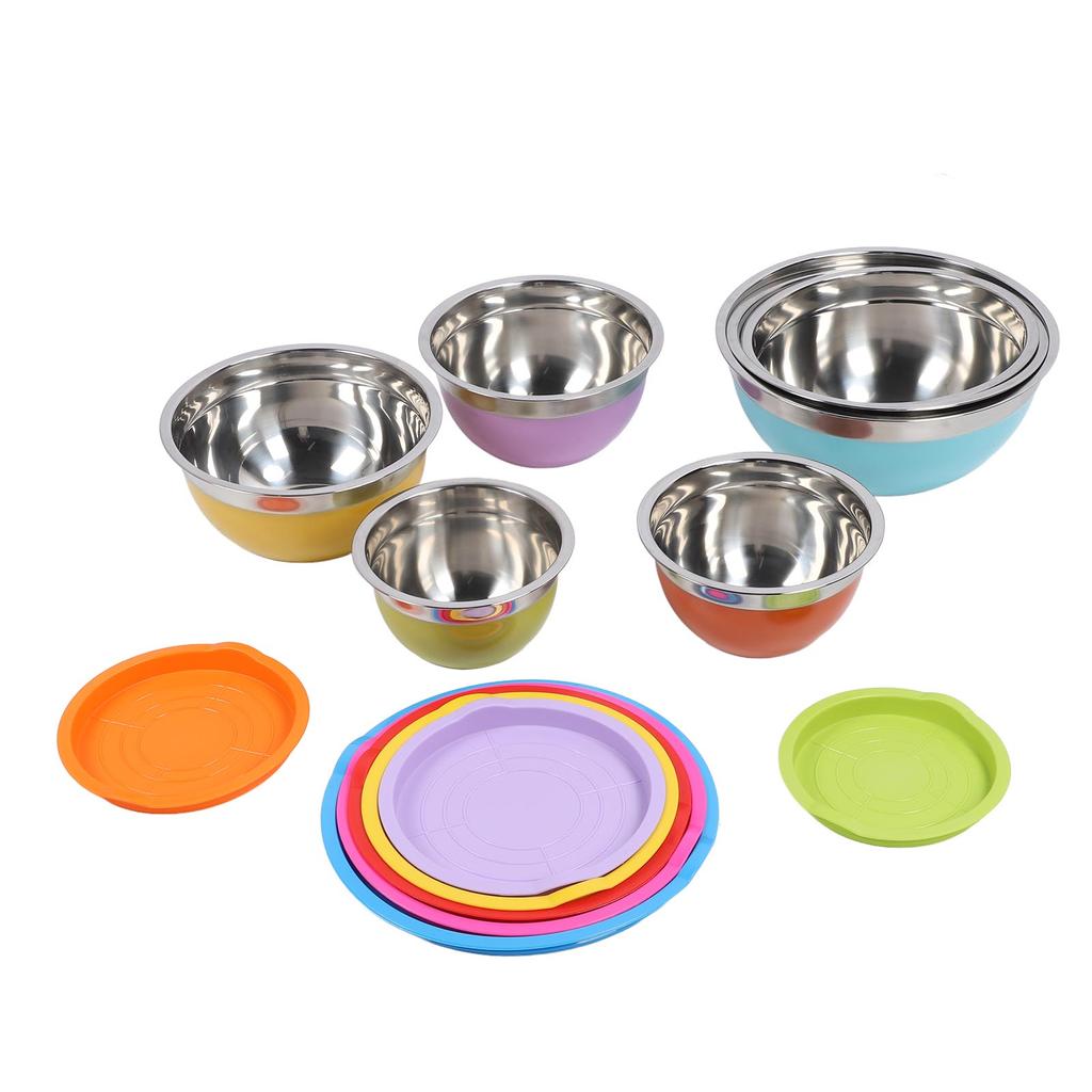 2. Конструкция надежных крышек: В комплект мисок для смешивания из нержавеющей стали входят 7 пластиковых крышек, которые плотно закрываются, чтобы сохранить свежесть продуктов и предотвратить их порчу.