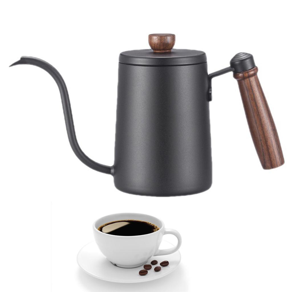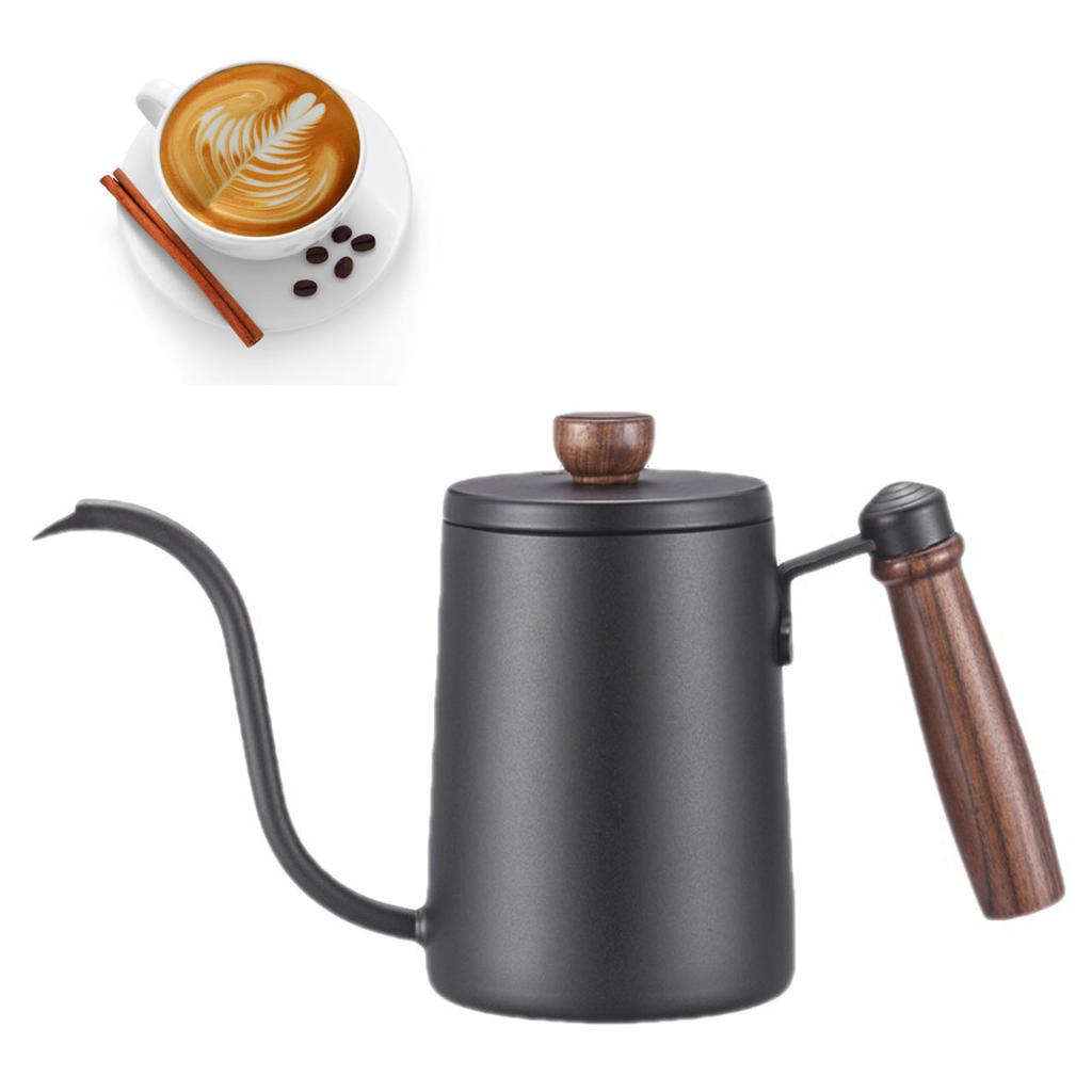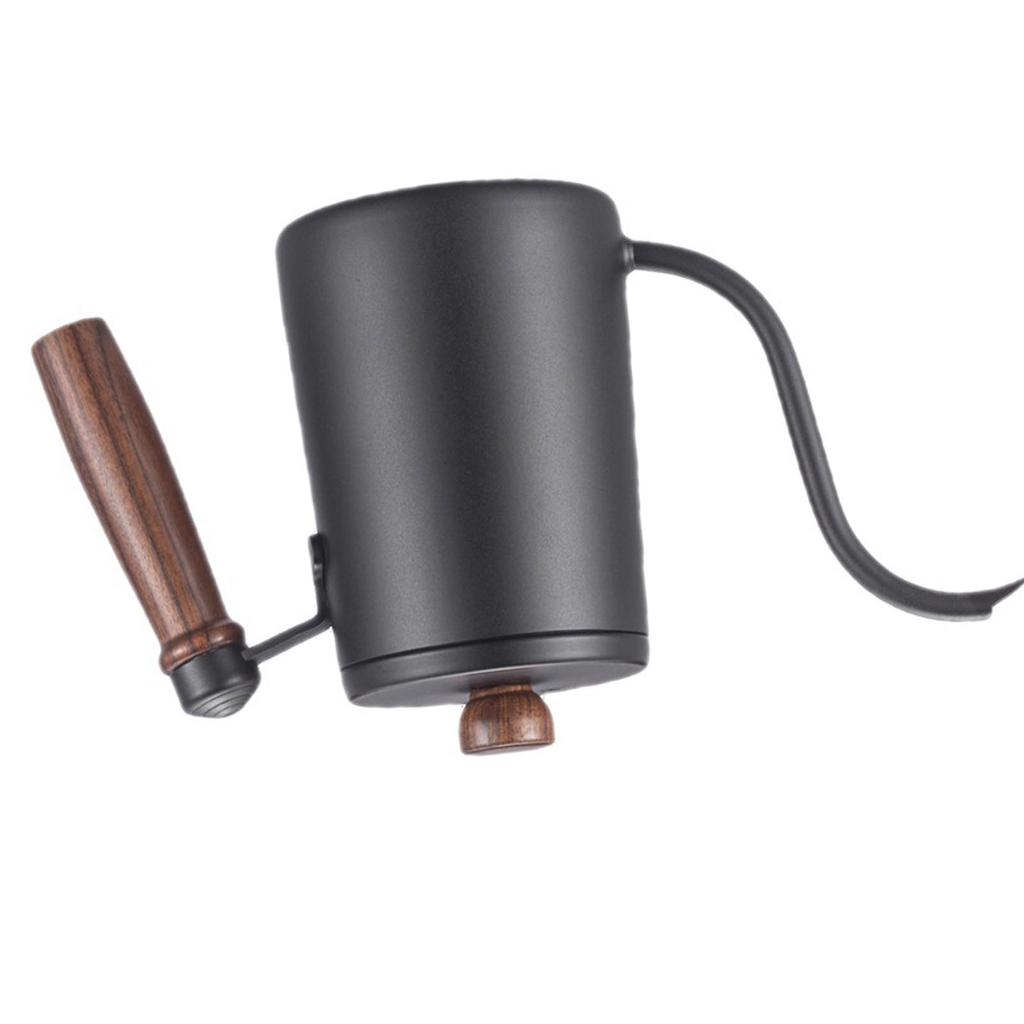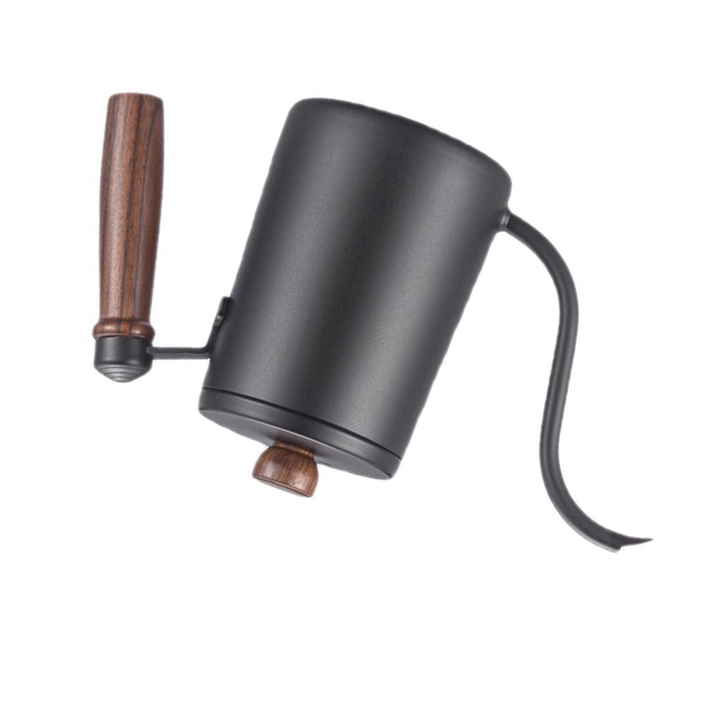 Ручной капельный чайник для кофе с деревянной ручкой и гибкой шеей из нержавеющей стали 304, черный