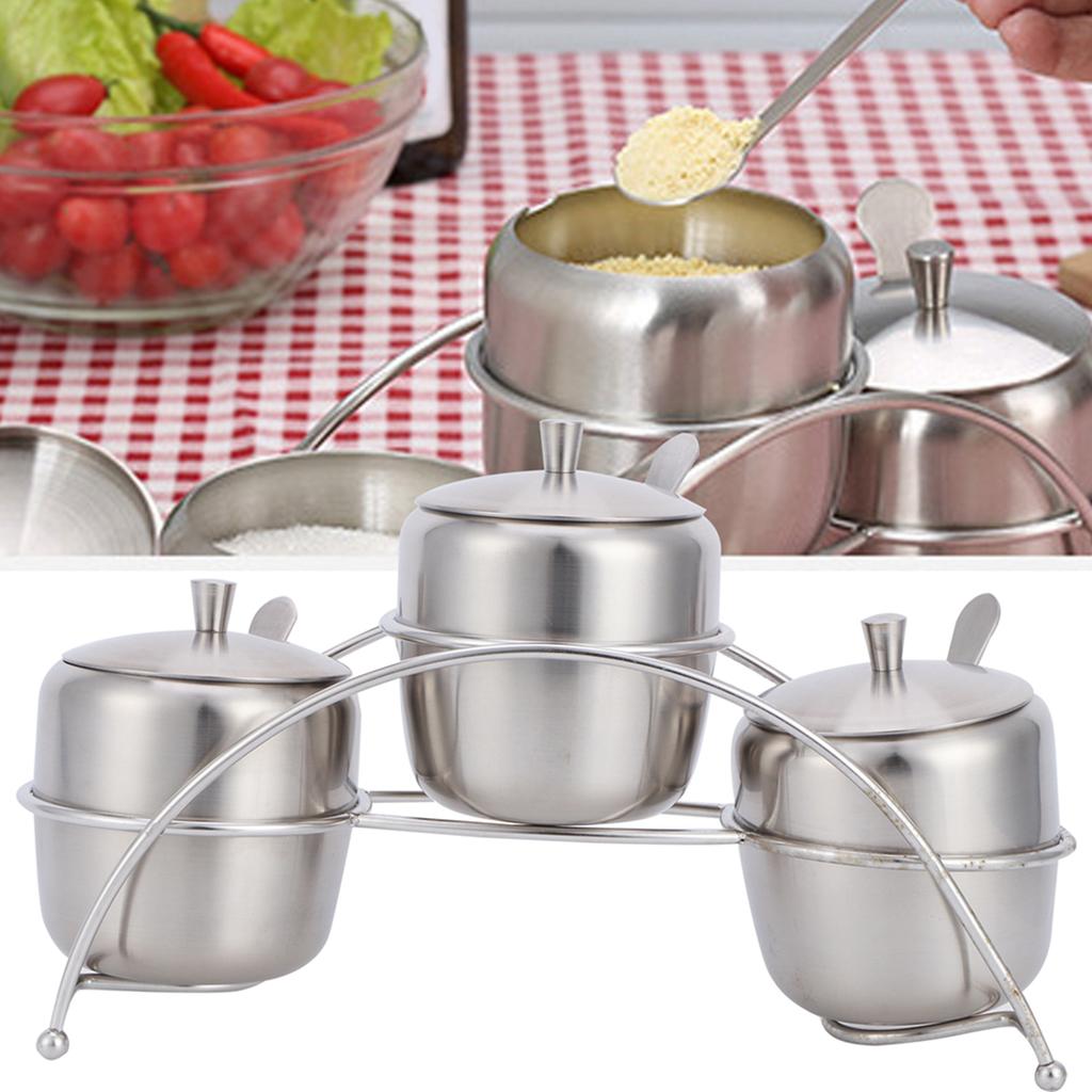 304 нержавеющая сталь горшок для специй контейнер для соли сахар коробка для хранения набор для специй