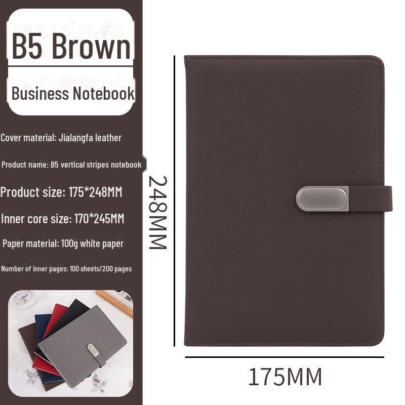 Блокнот формата А5 с вертикальными полосками и магнитной пряжкой из полиуретана - индивидуальный подарочный утолщенный офисный блокнот