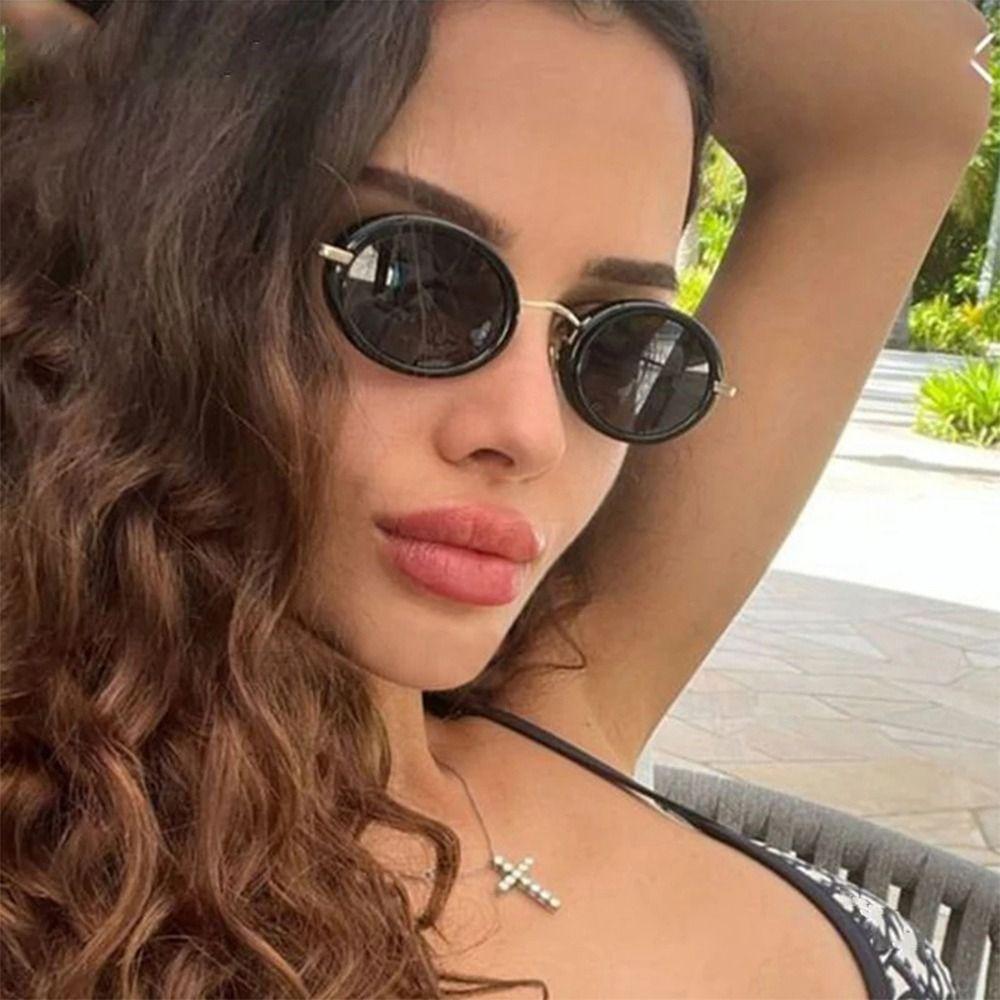 Защита UV400 Овальные солнцезащитные очки с небольшой металлической оправой Очки в стиле ретро Y2K для женщин и мужчин