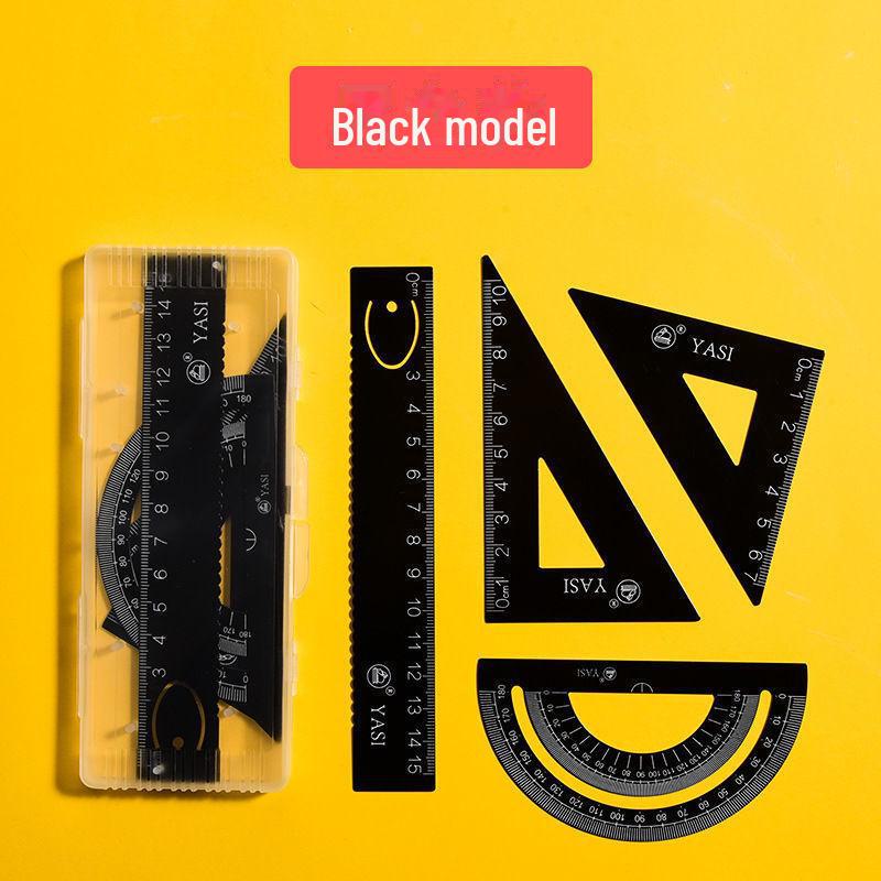 Многофункциональный набор линеек для студентов: В комплект входят масштабная линейка, треугольная линейка, транспортир и черно-белая железная линейка.