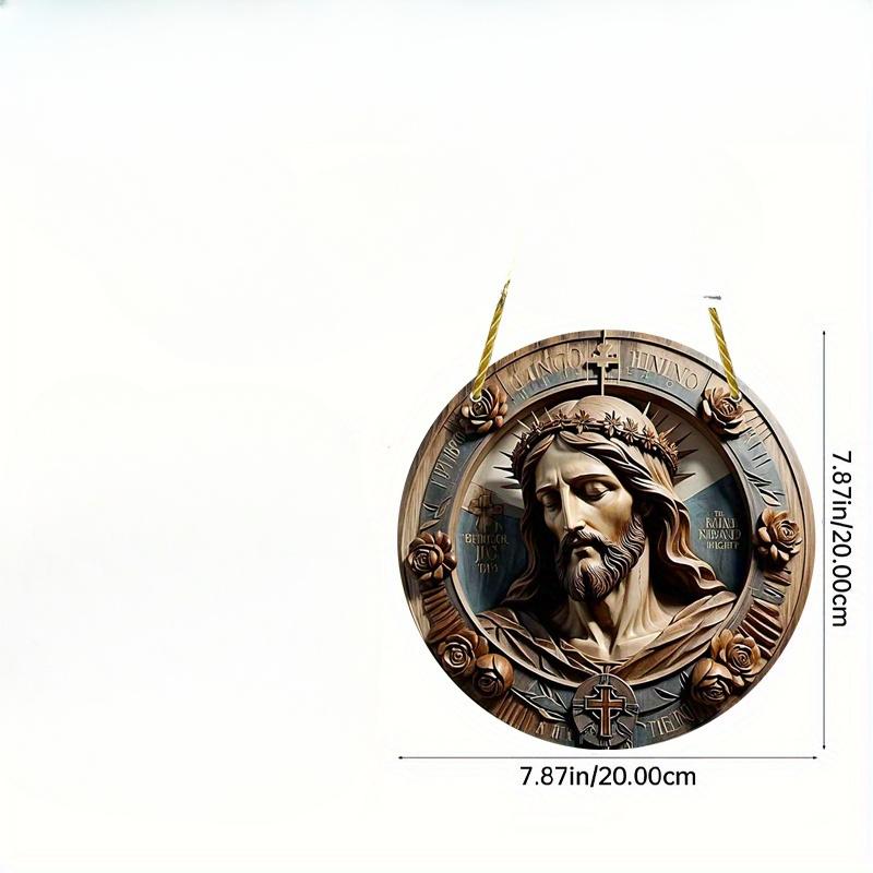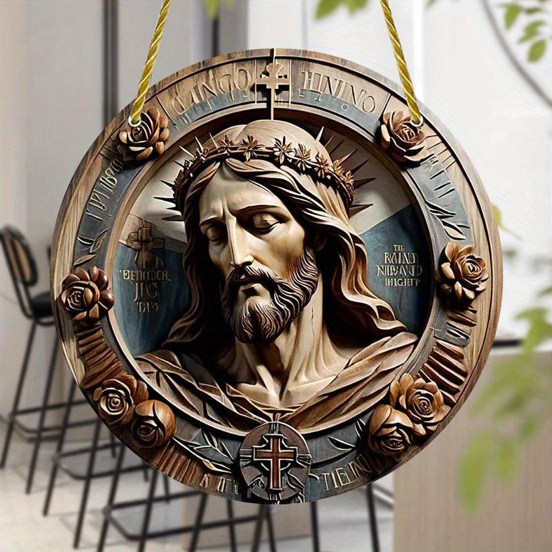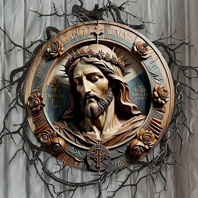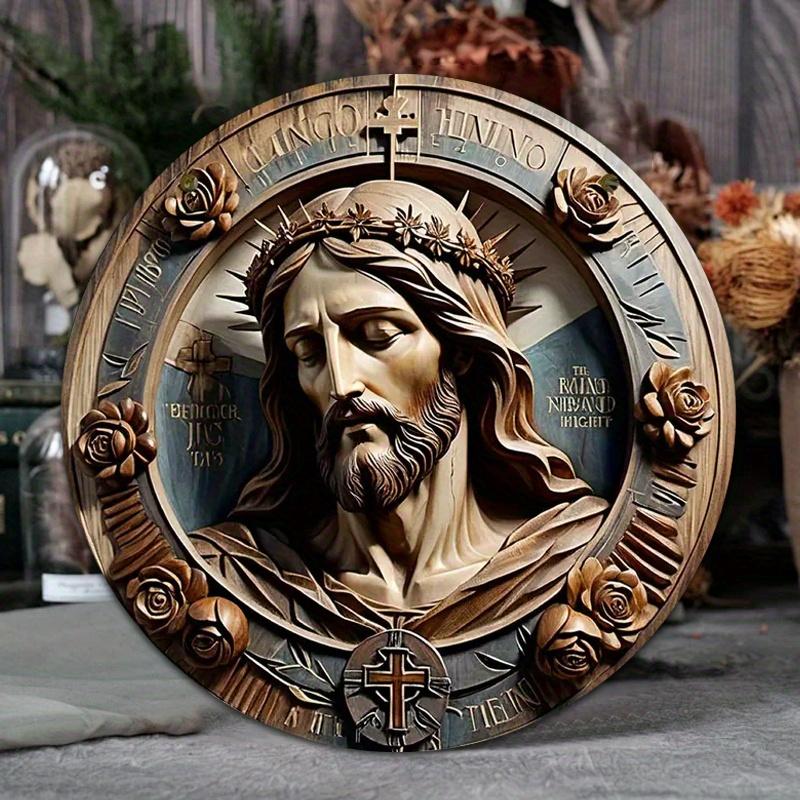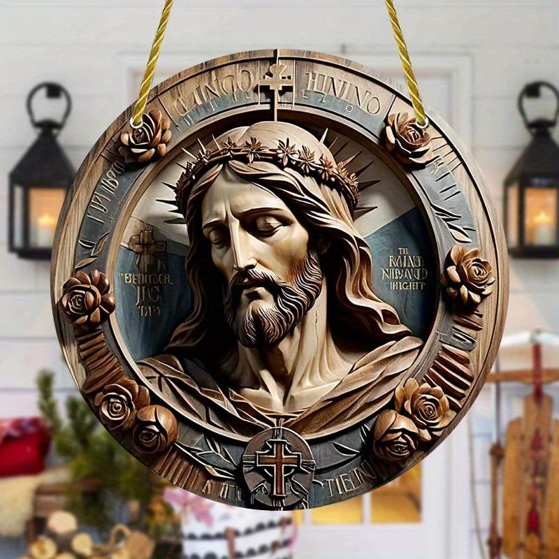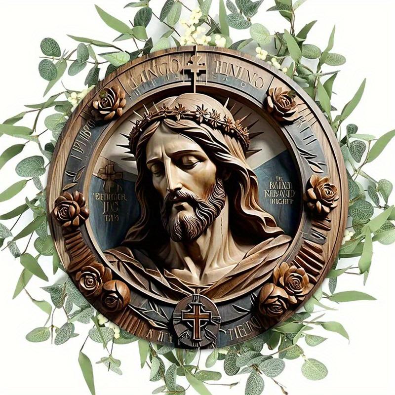 Рельефное искусство религиозного лидера с темой Цзингуань - круглые деревянные знаки в примитивном стиле, подходящие для дома, офиса, входной двери, садового дворика