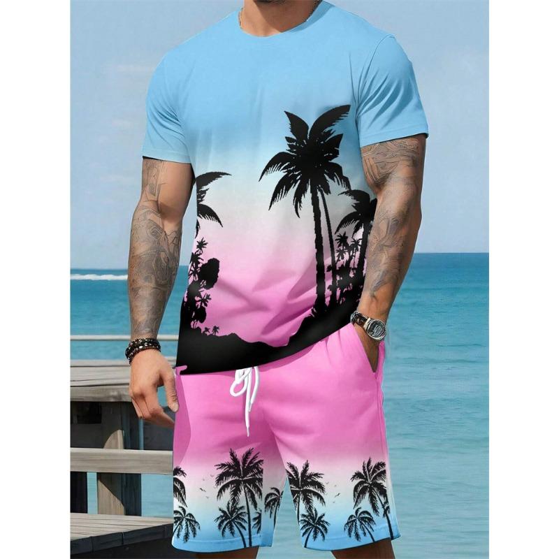 мужской костюм летняя футболка шорты комплекты 2 шт комплект 3D-печать O-образный вырез Одежда Уличная спортивная одежда Спортивный костюм Хип-хоп Короткий рукав