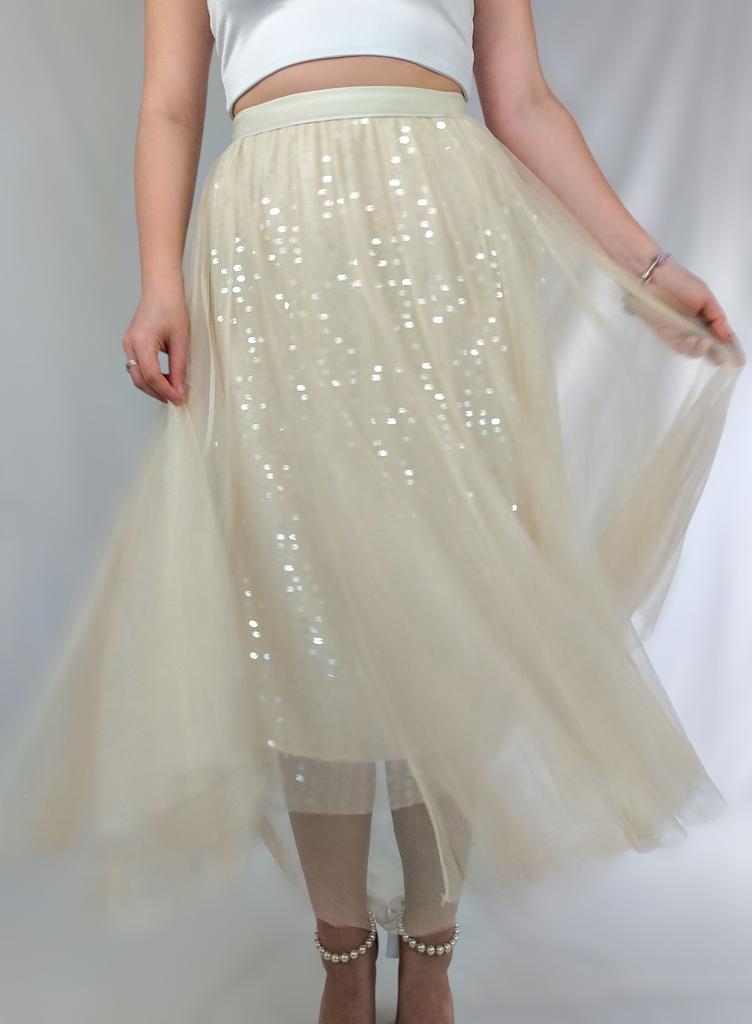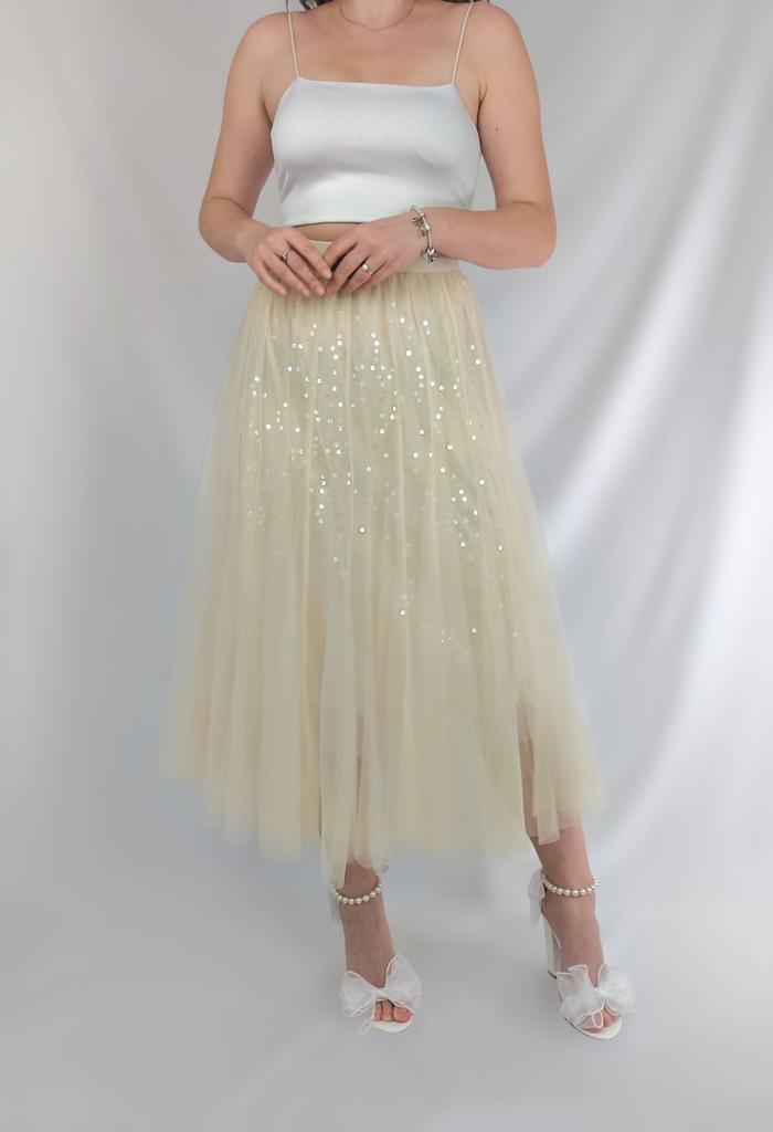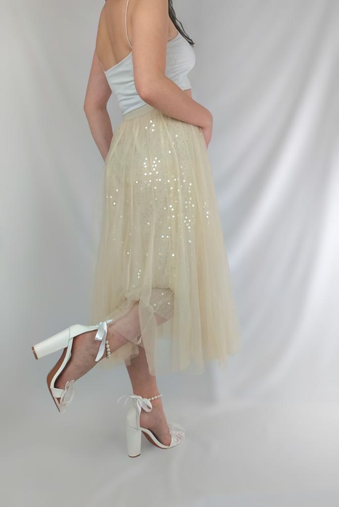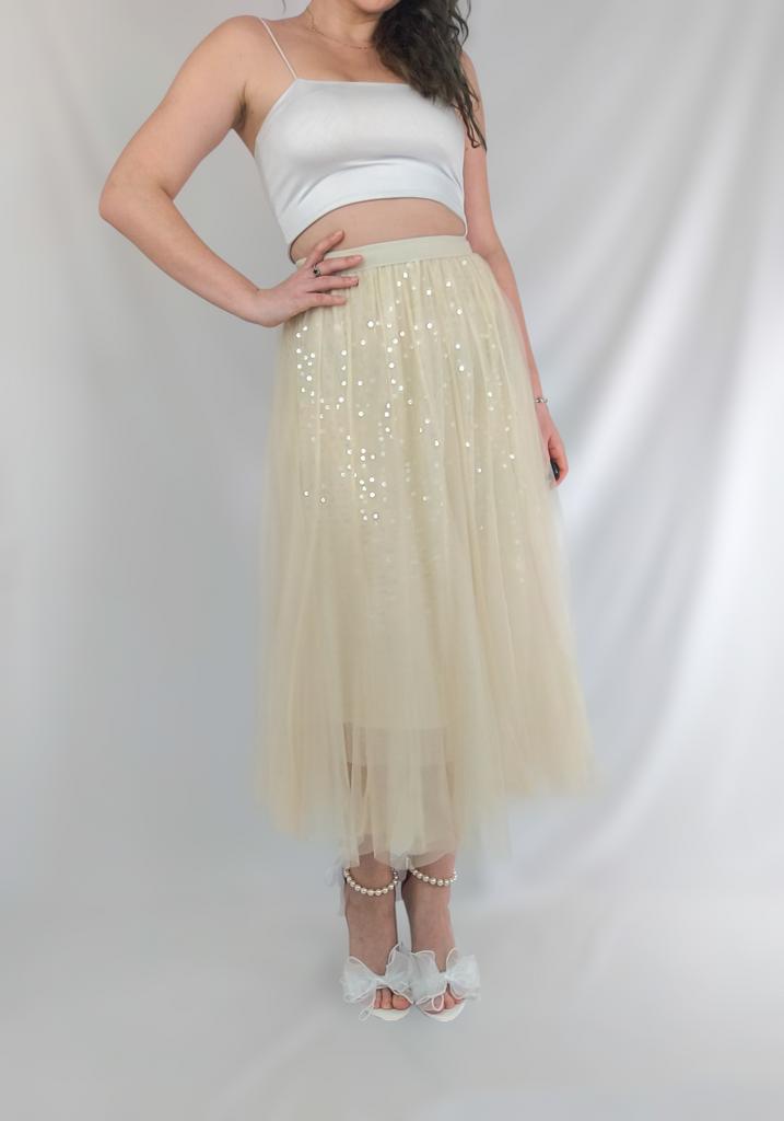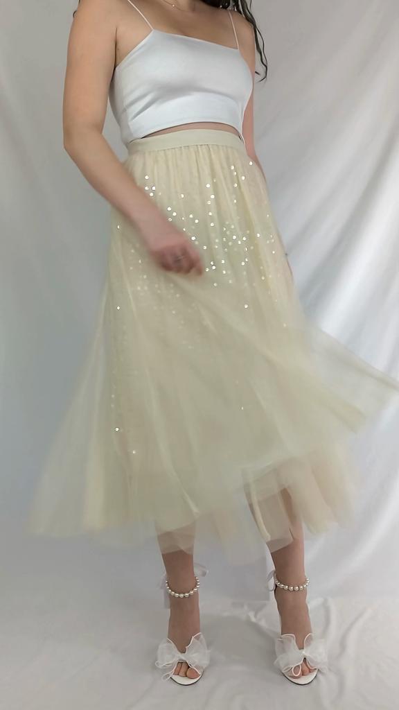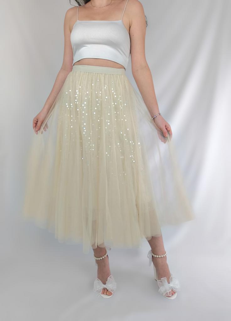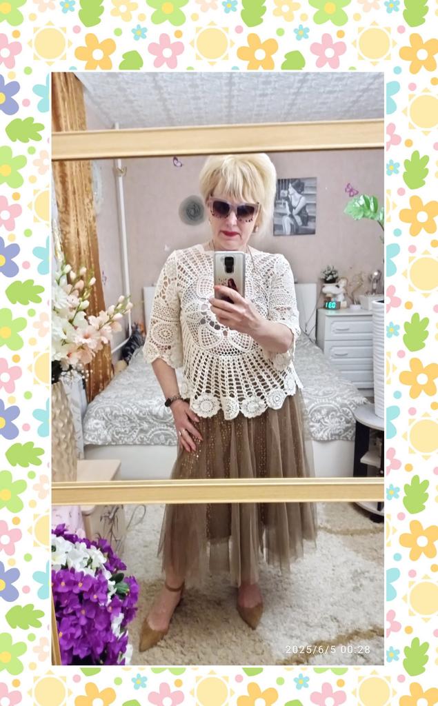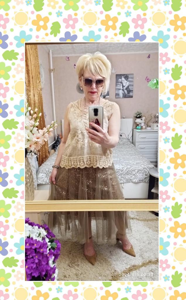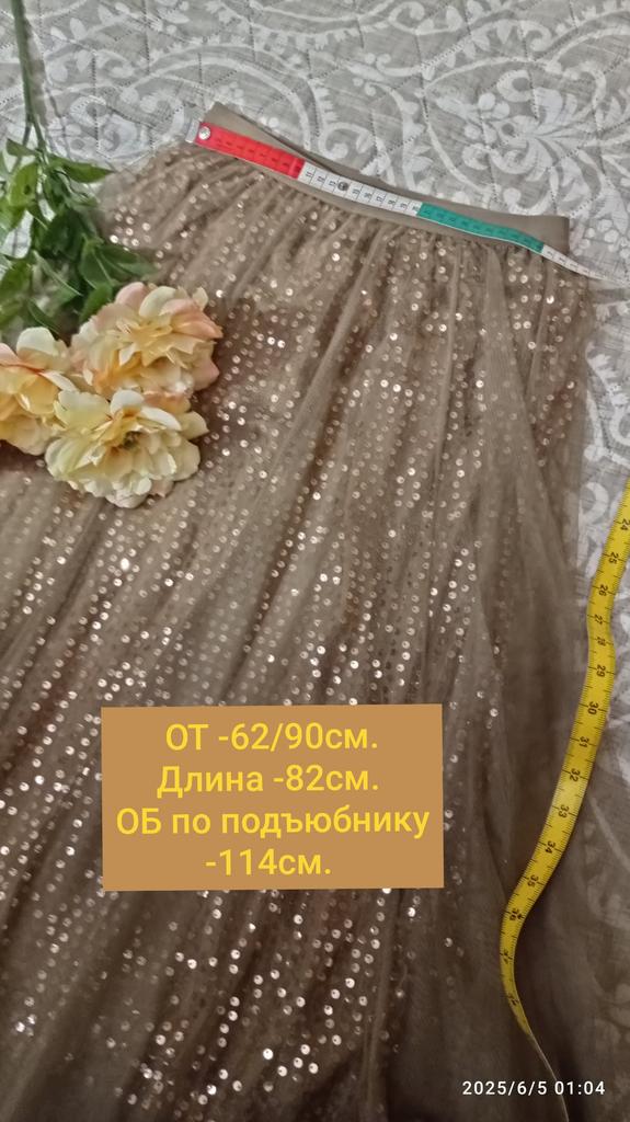 Эта юбка представляет собой легкую и воздушную модель миди-длины, выполненную из многослойного тюла кремового оттенка. Она создает очень нежный и романтичный образ. 🔸Размер универсальный, расцветок несколько. - Замеры изделия: Длина - 82 см ОТ - 66-100 см ОБ - 122 см 🔸Основной материал — тюль, что придает юбке объем и полупрозрачность. Под тюлем есть более плотная подкладка в тон, чтобы обеспечить непрозрачность. Но все же я рекомендую надевать белье телесного цвета. 🔸Подклад юбки украшен россыпью блестящих пайеток, которые расположены хаотично по всей поверхности. Пайетки светлого цвета, что придает юбке деликатное мерцание при движении и освещении., 🔸Крой юбки расклешенный, что позволяет ей красиво струиться и создавать пышный силуэт. 🔸Пояс эластичный, что обеспечивает комфортную посадку и универсальность в размере. Рекомендую 👍 Ставлю ⭐ ⭐ ⭐ ⭐ ⭐ Спасибо продавцу ❤️ и Joom ❤️