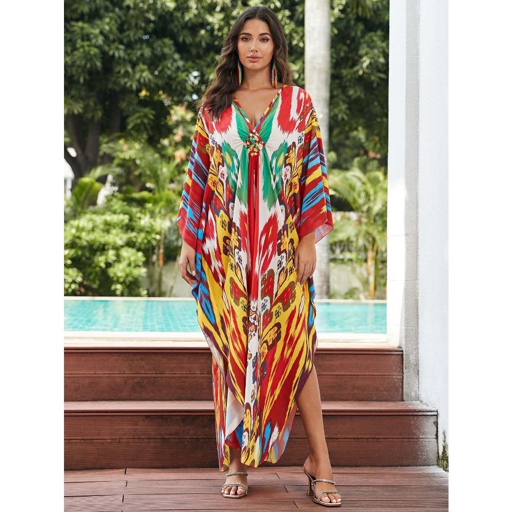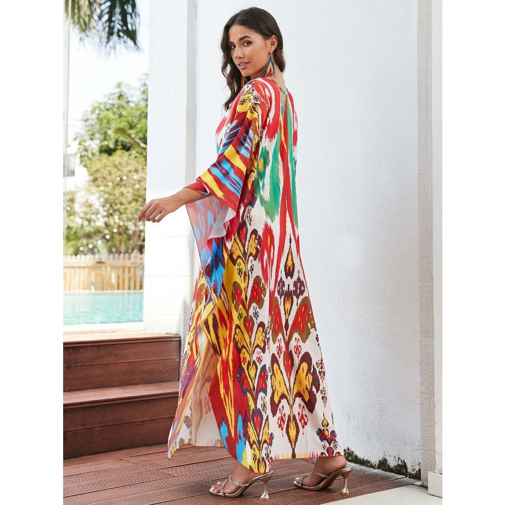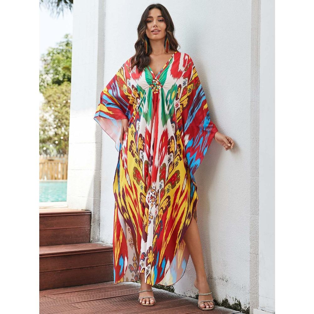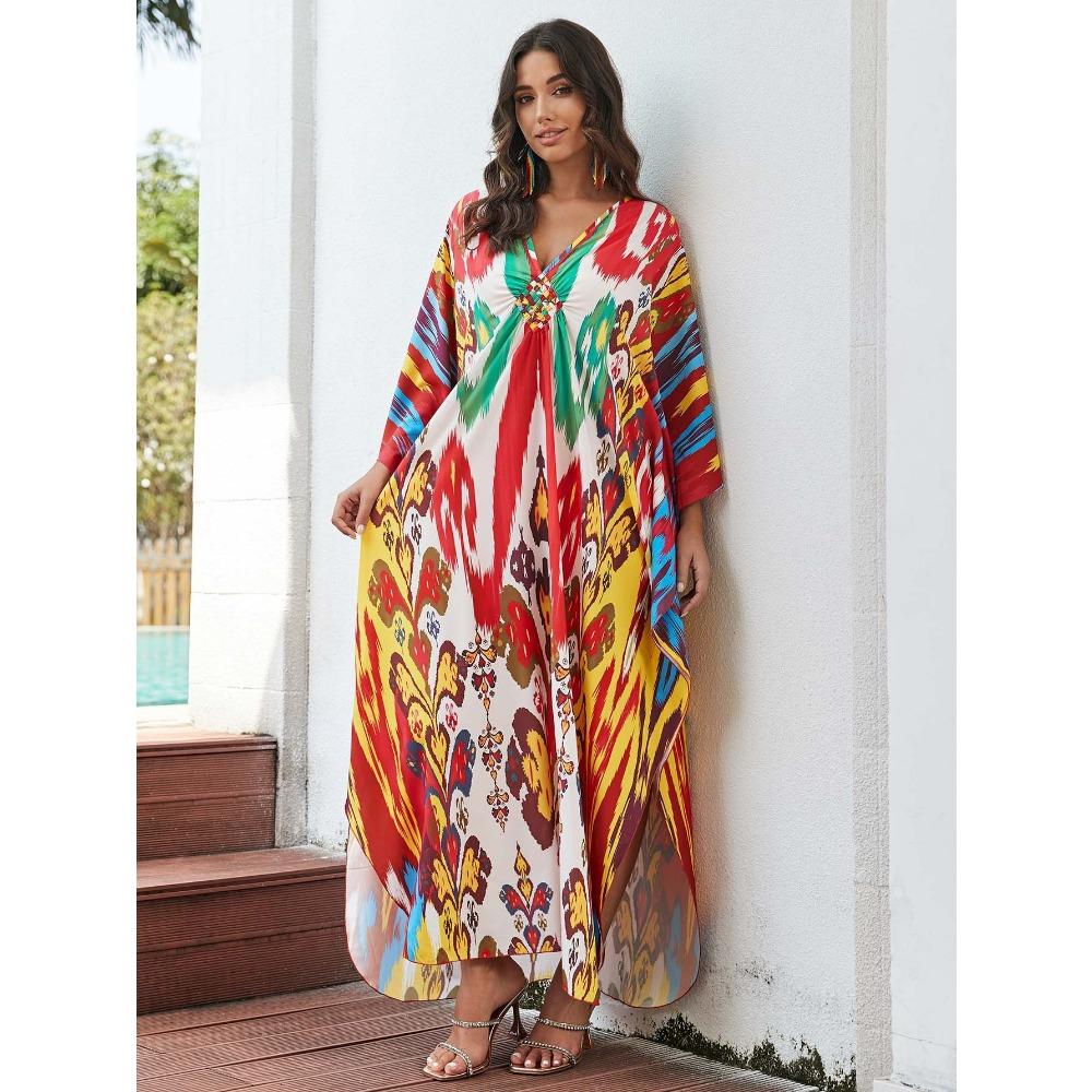 Женское платье-кафтан в стиле бохо большого размера с контрастным принтом свободного кроя Vacay Beach