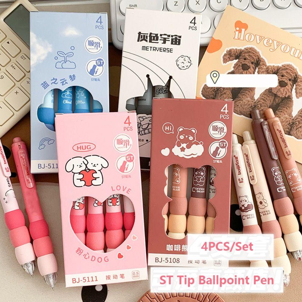 4PCS/Set Stationery Set Ballpoint Pen Soft Touch Grip Sign Pen Cartoon Neutral Pen Students Gift