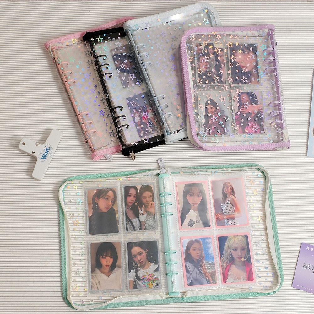 Папка на молнии с лазерной звездой из ПВХ, коллекционная книга, держатель для фотокарт А5, новый фотоальбом Kpop Idol