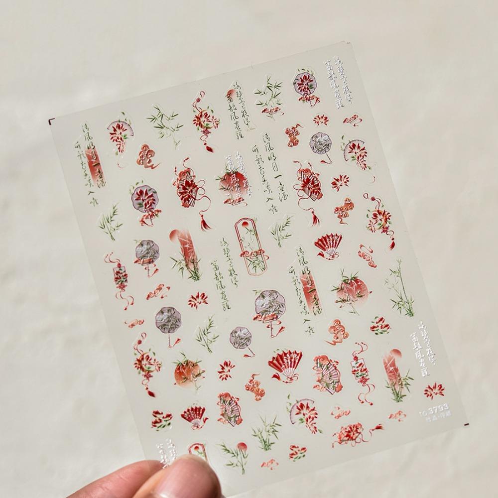 Flowers Chinese Nail Decals Kite Swallow Bird Chinese Nail Decorations Spring