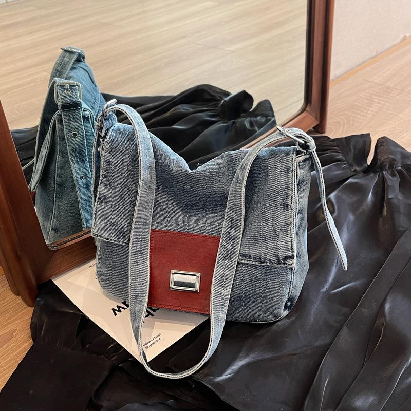 Женская сумка джинсовая повседневная сумка-багет в стиле ретро подмышечная сумка Универсальная сумка через плечо большой вместимости — купить товар онлайн с бесплатной доставкой по всему миру!