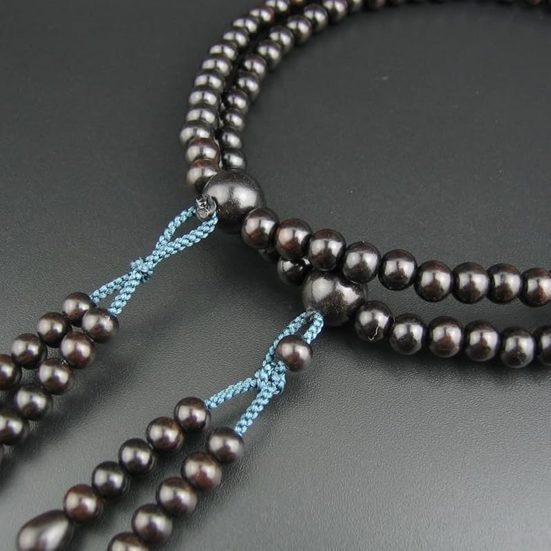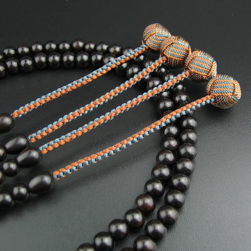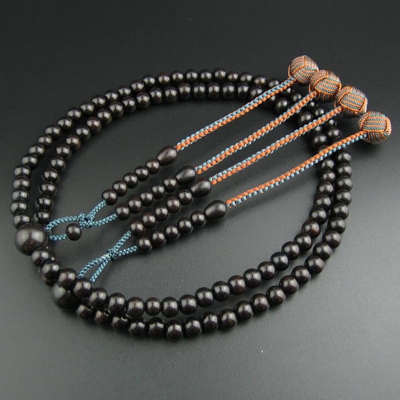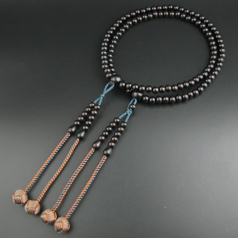 Это официальные молитвенные четки для мужчин секты Сингон. В основе лежат 108 основных бусин, которые состоят из двух главных бусин и четырех небесных бусин. С каждой стороны от родительской бусины находятся 10 ученических бусин. (кейко), и к кончику ученической бусины прикреплена бусина росы. Маленькая бусина между ученической бусиной и материнской бусиной с одной стороны называется бусиной надама. Материнские бусины (родительские бусины) того, что с Намадамой. Босс на другой стороне называется Одоме. (задний босс).Для этих целей используются Брахма Тэнбо, такие как Кикубо и Одамаки Брахма Тэнбо.. Материалом послужило популярное черное дерево. Древесина черного дерева известна как ценная порода дерева с древних времен, а характеристики сердцевины, используемой в изделиях, таковы: она имеет угольно-черный цвет, плотная, твердая и прочная. Кисточки изготовлены из санскритских кисточек Одамаки, которые долговечны, просты в обращении и не теряют своей формы. Двухцветные кисточки более модны.