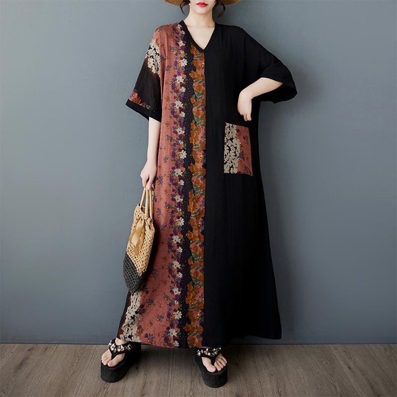 DIMANAF 2025 Летнее платье больших размеров Женское повседневное винтажное длинное платье Свободное платье оверсайз с цветочным принтом Макси