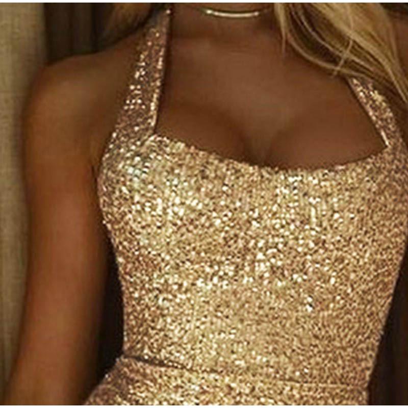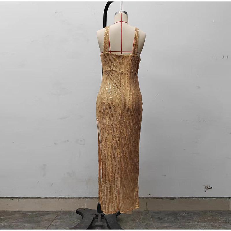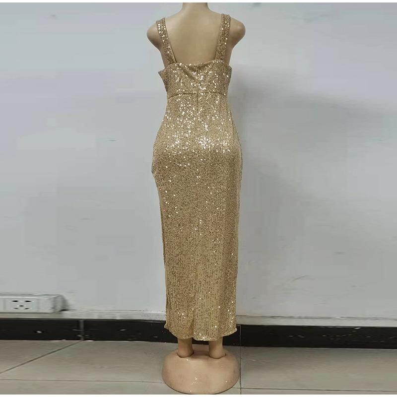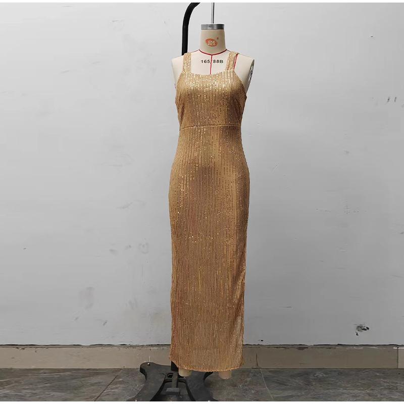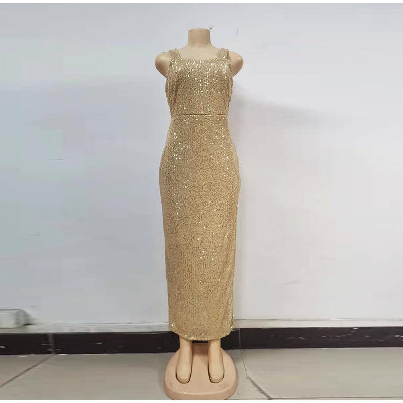Платье с открытыми плечами и золотыми пайетками, сексуальное вечернее платье, весна 2025, новая женская одежда, модное однотонное платье без рукавов