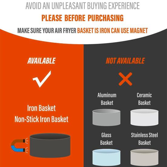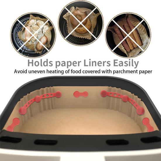 Безопасная технология крепления: Высококачественные силиконовые магнитные зажимы надежно фиксируют пергаментную подложку фритюрницы на месте, предотвращая ее подъем или блокировку воздушного потока.. Обеспечьте равномерное приготовление пищи и исключите риски, разместив подложку вдали от нагревательных элементов.