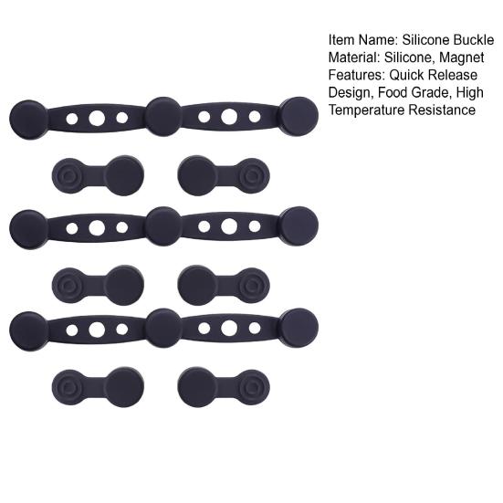 Пищевой класс, высокая термостойкость: Изготовленная из пищевого термостойкого силикона, эта магнитная силиконовая пряжка для фритюрницы выдерживает температуру до 464 градусов по Фаренгейту.. Наслаждайтесь безопасным приготовлением пищи без вредных веществ и запахов, гарантируя уверенность в каждом приеме пищи.