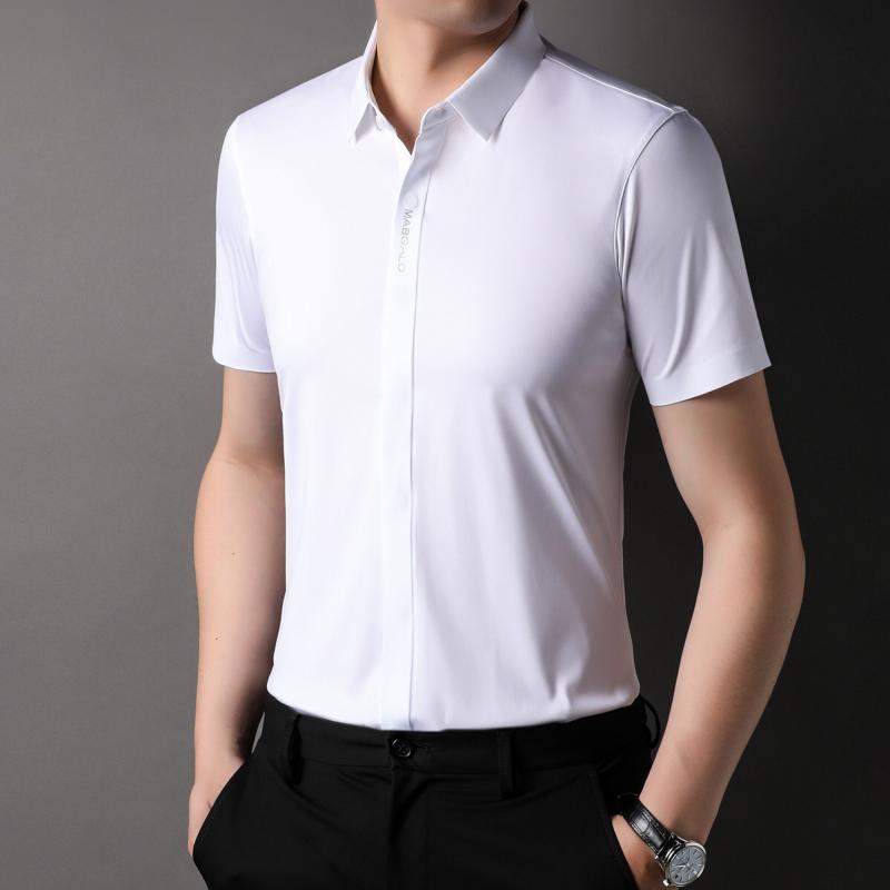2025 Лето Мужская Однотонная Рубашка Мужская Деловая Платье Гавайские Рубашки Лето Мужская Свободная Блузка с Коротким Рукавом — купить товар онлайн с бесплатной доставкой по всему миру!