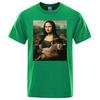 Смешная футболка с принтом Моны Лизы и кошки для мужчин, летняя хлопковая футболка, свободная дышащая одежда, короткая