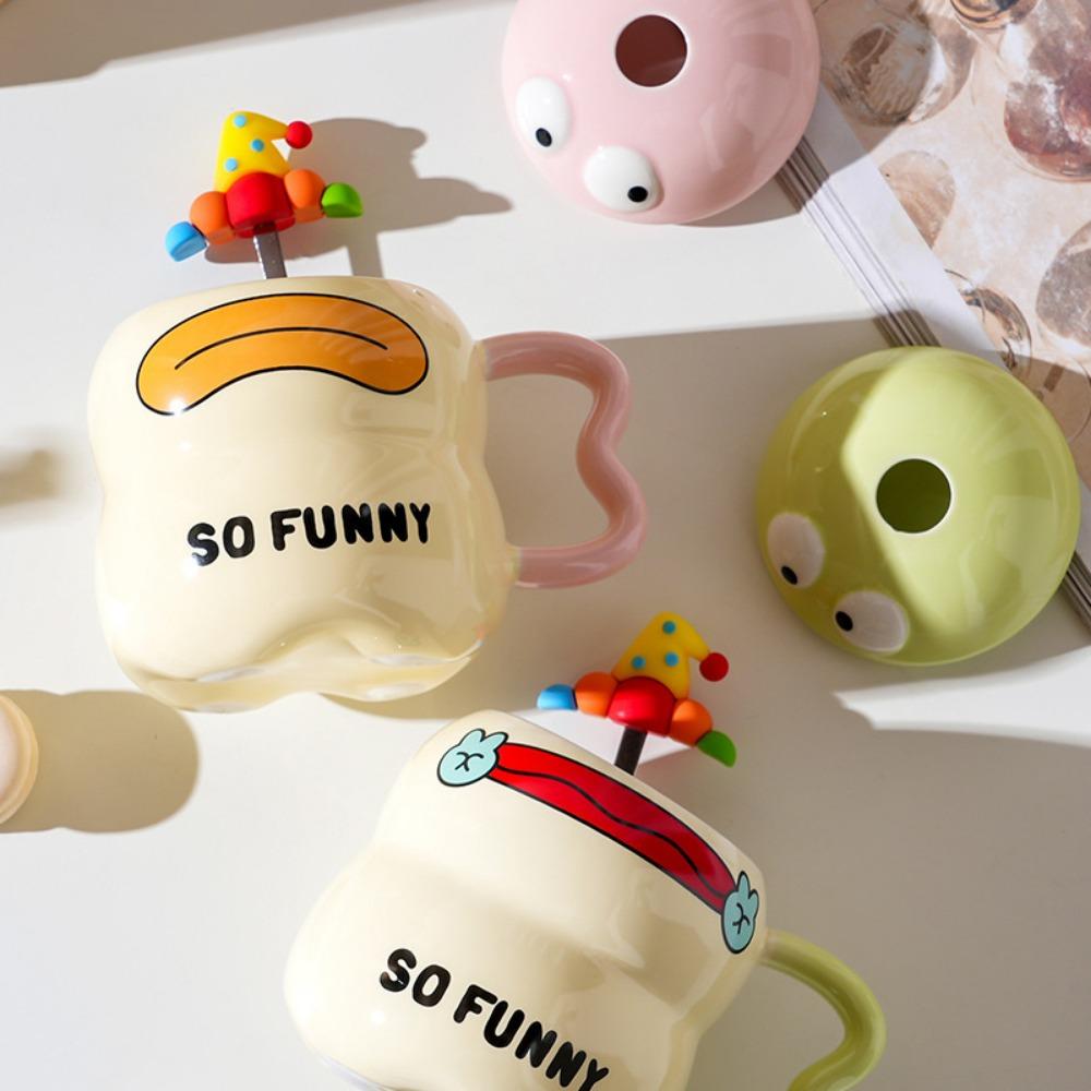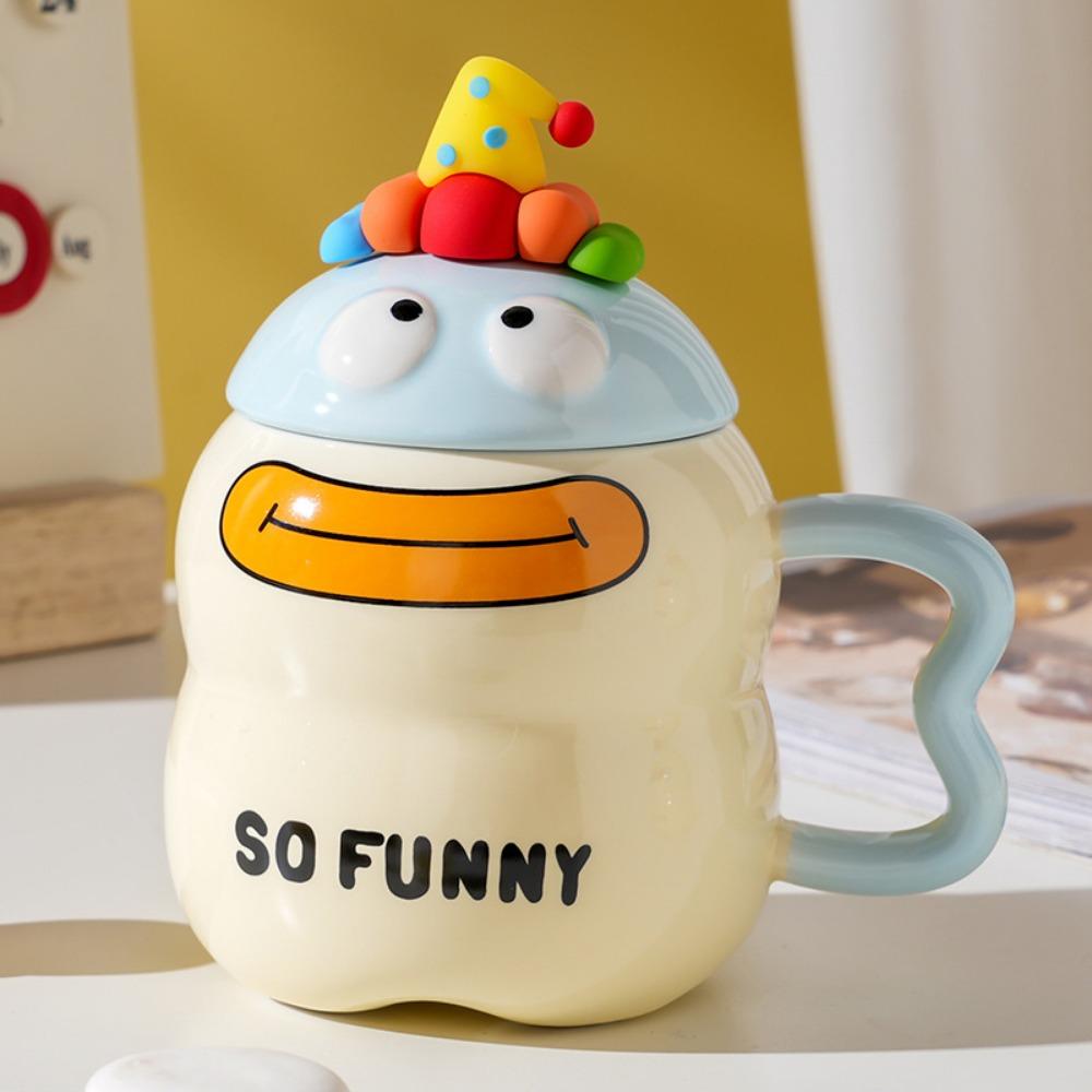 Маленький подарочный сувенир, милая мультяшная кружка, забавная кружка-клоун с крышкой, керамический набор чашек, бытовая кружка для воды
