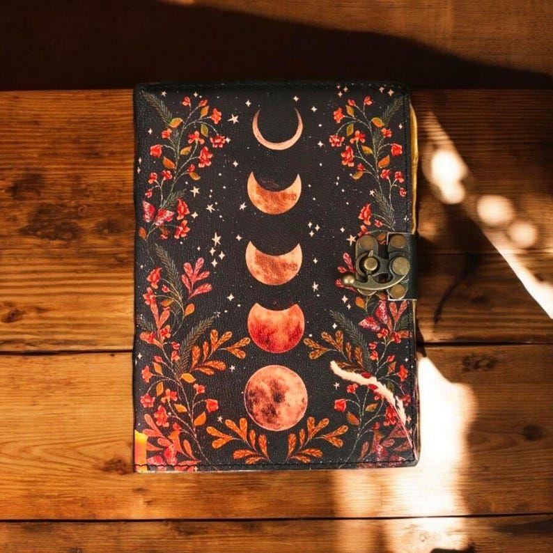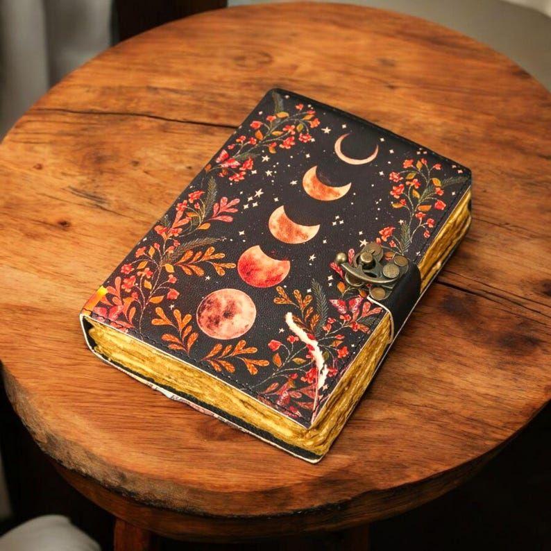 Кожаный журнал - Фазы Луны Винтажный кожаный журнал для мужчин и женщин, антикварная бумага ручной работы с неровным краем, отличная идея для подарка