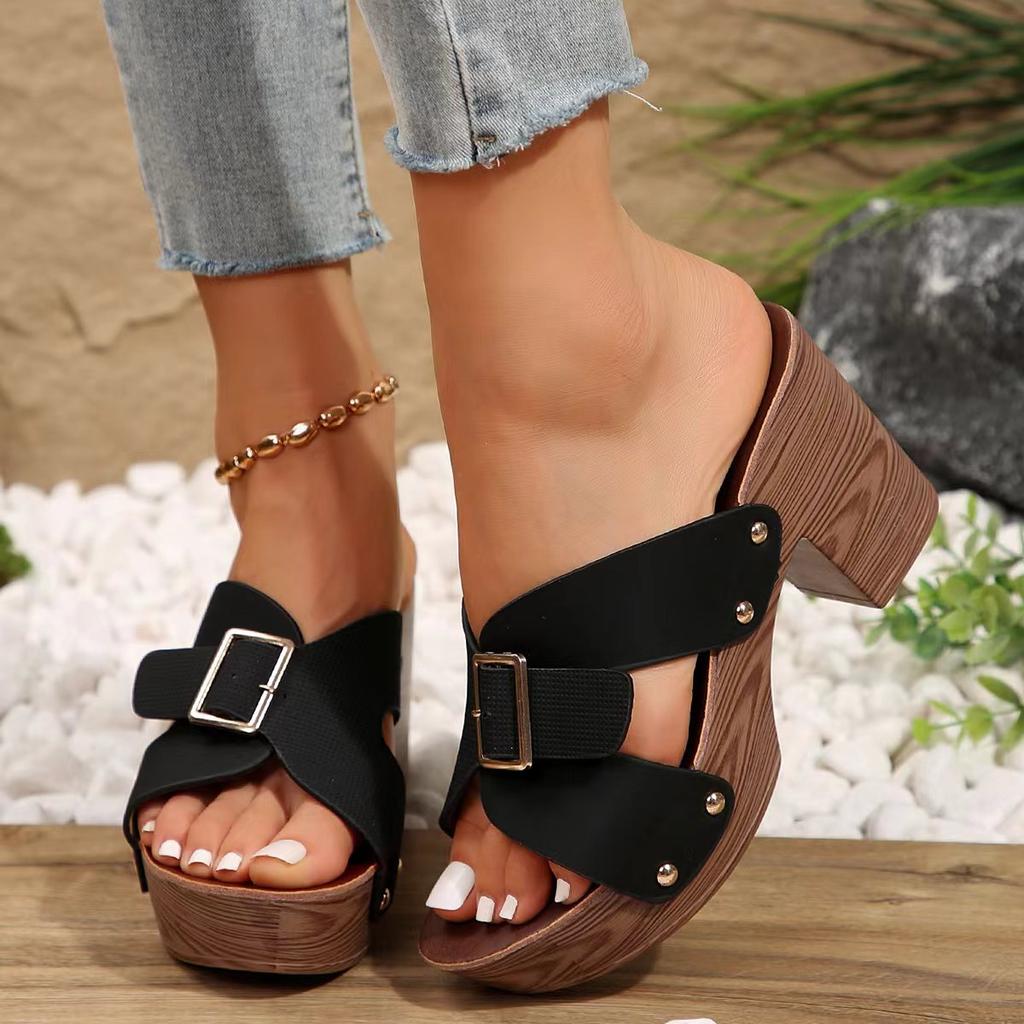 Сандалии женские британский стиль римская обувь удобные мягкие высокие каблуки летние сандалии повседневные тапочки с металлической пряжкой сандалии на танкетке платформы