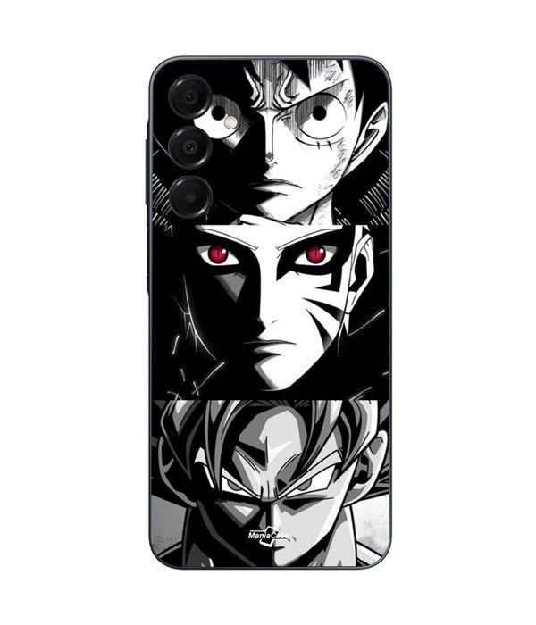 Coque Pour Samsung Galaxy A15 Sangoku Naruto Luffy one piece Dragon Ball Z fond noir et blanc, anime manga Maniacase