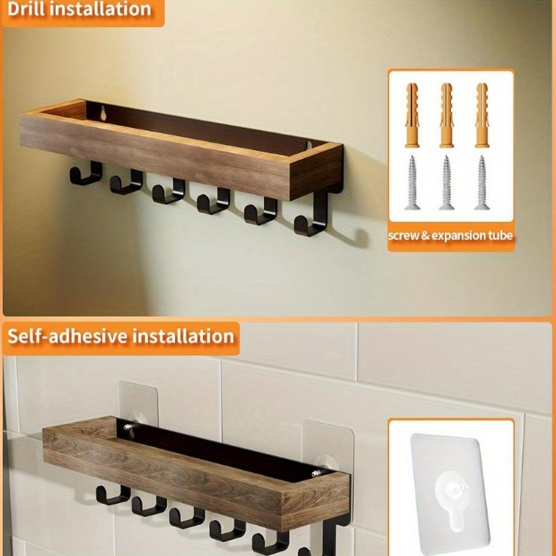 1 шт. Деревянная настенная полка в деревенском стиле с 6 крючками: Плавающий органайзер для хранения ключей, почты и многого другого (Гостиная, спальня, ванная комната)