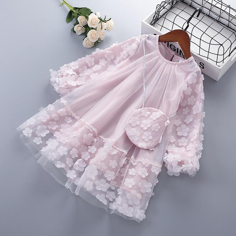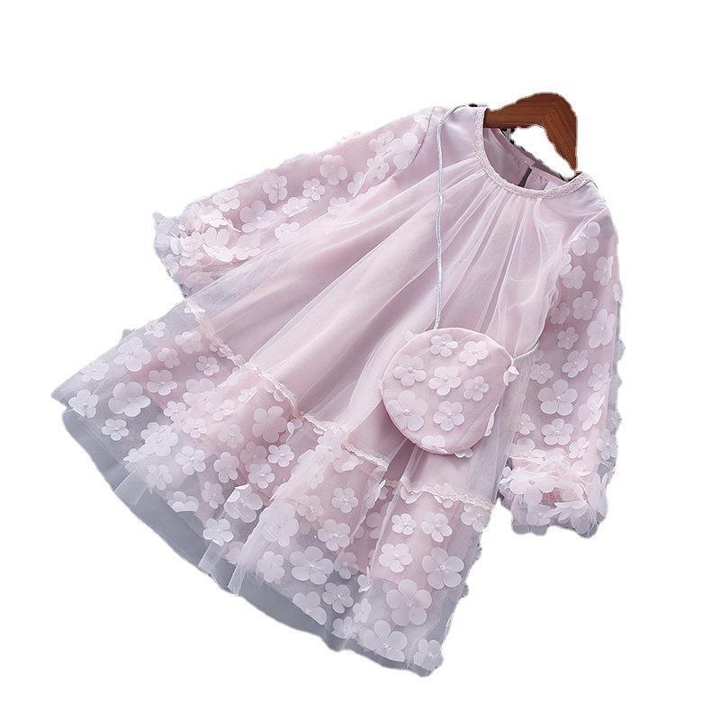 Платье принцессы для девочек, весенне-осенняя детская мода, блестящее платье с длинными рукавами и цветочным принтом, с запахом