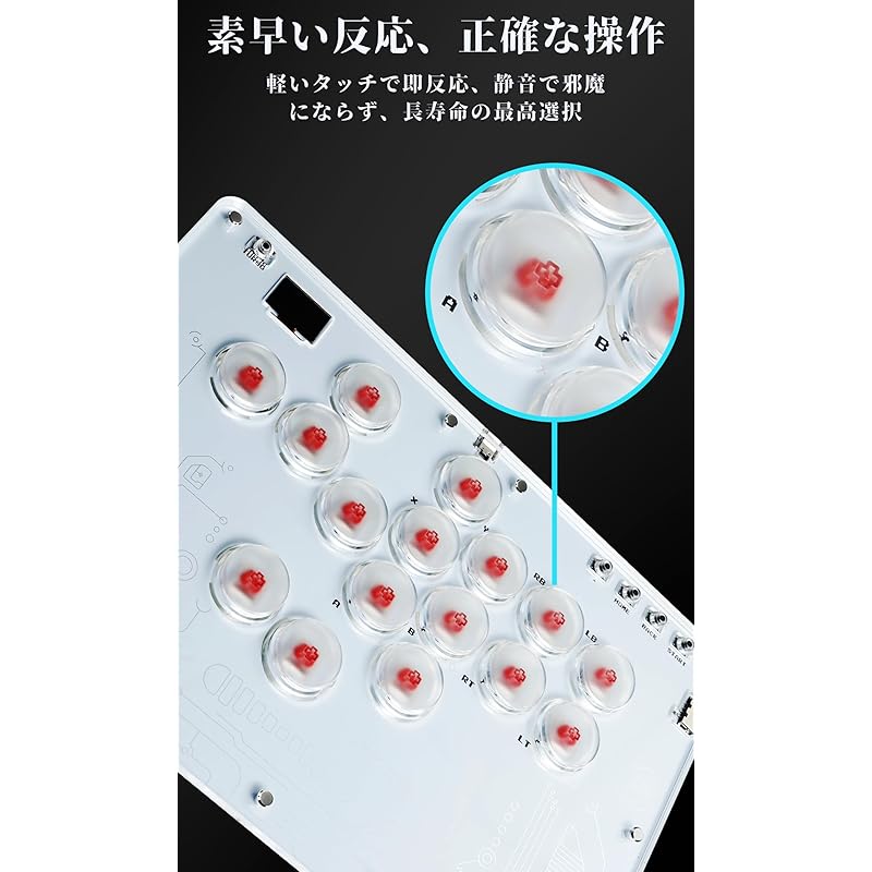 [Превосходное удобство использования и сверхбыстрый отклик] Бесрычажный контроллер оснащен 16 кнопками диаметром 26 мм и настраиваемыми клавишами, что делает его удобным и гибким в использовании. Бесрычажный контроллер использует технологию кристаллических переключателей со временем отклика менее 1 миллисекунды, практически без задержек, а инструкции передаются точно. Ваши пальцы не устанут даже при длительной игре, и вы сможете наслаждаться другим ощущением клавиш.