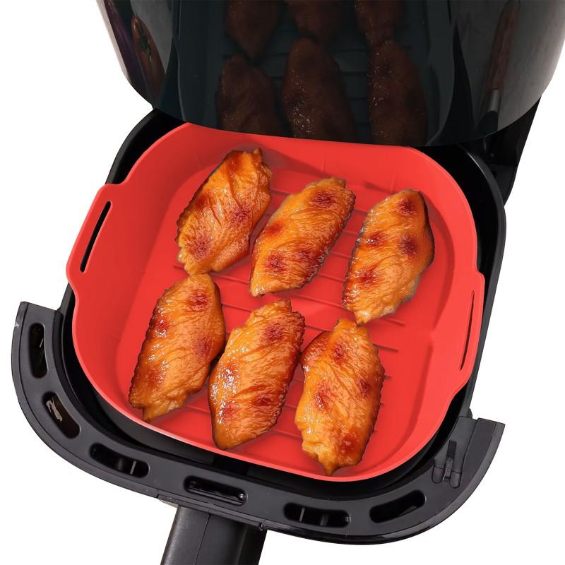 Набор из 2 корзин для готовки SILIPOT SQUARE RED KITCHENCOOK идеально подходит для оптимизации использования вашей фритюрницы с горячим воздухом, но также прекрасно совместим с духовками, микроволновыми печами, морозильными камерами и посудомоечными машинами.. Изготовленные из высококачественного пищевого силикона, не содержащего бисфенол А, нетоксичного и не имеющего запаха, эти корзины многоразового использования, антипригарные и устойчивы к экстремальным температурам от -40°C до +240°C.. Их текстурированное основание обеспечивает лучший отвод жира для приготовления более здоровой пищи.. Благодаря боковым ручкам ими легко и безопасно пользоваться.. Экологичные, долговечные и простые в уходе, они выгодно заменяют одноразовую бумагу и упрощают ваши повседневные приготовления.