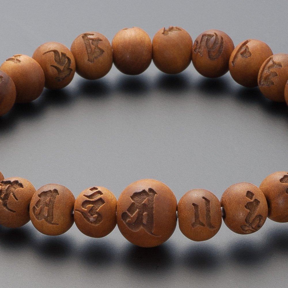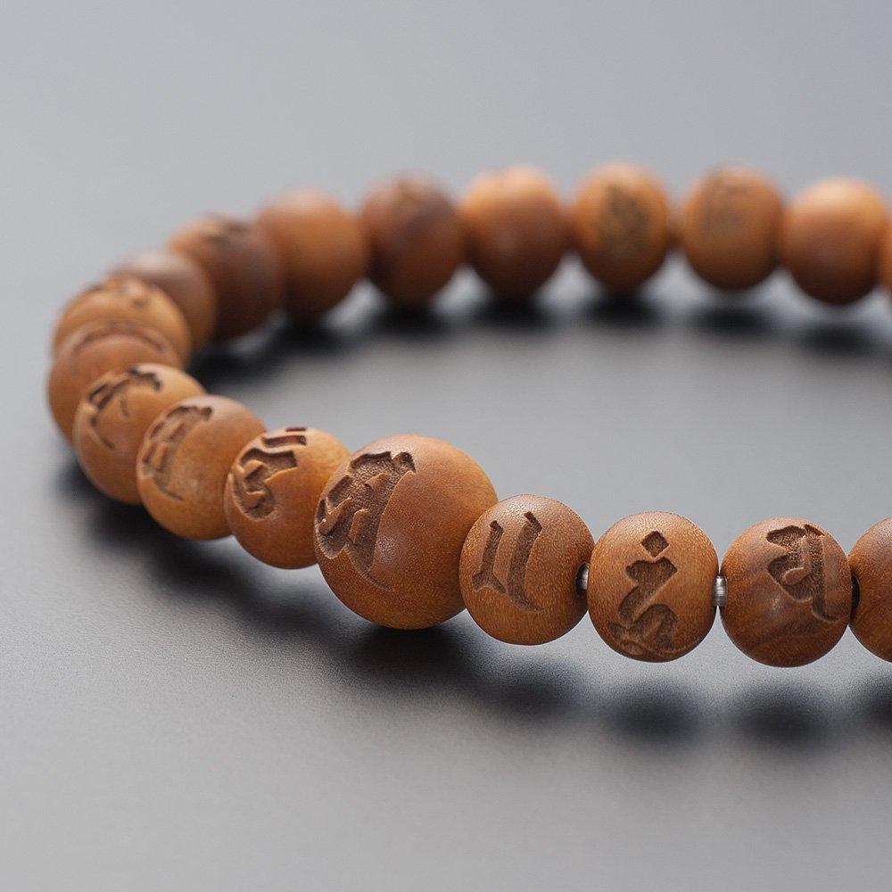 Этот браслет изготовлен из индийского сандалового дерева, которое является лучшим сортом сандалового дерева, и на нем выгравирована надпись «Комё Сингон».. Индийское сандаловое дерево используется в качестве сырья для высококачественных благовоний, поэтому оно имеет исключительный аромат, и вы можете наслаждаться его изысканным ароматом, который успокаивает душу.