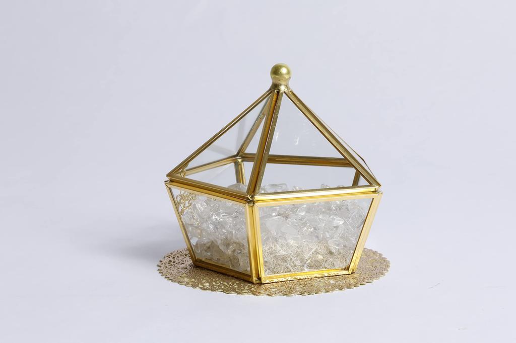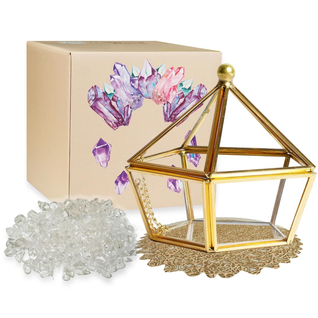 RELIGHT Натуральный камень Кристалл Пульсирующий камень Сила камня Очищение стеклянный аксессуар футляр набор интерьерная статуэтка Ш10см x В13см Золотой пятиугольник 300г