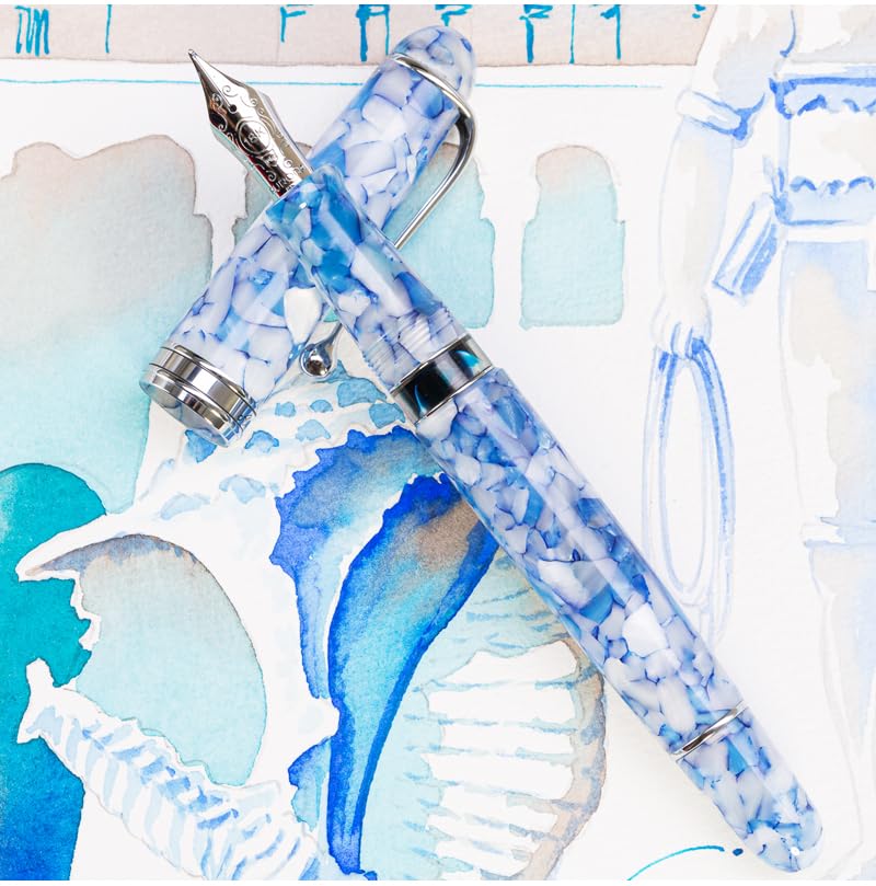 AURORA Fountain Pen AURORA Mysterious Journey to Italy Matera MATERA Turquoise Blue White CT 18K Piston Inhalation Type Fine Point CF &