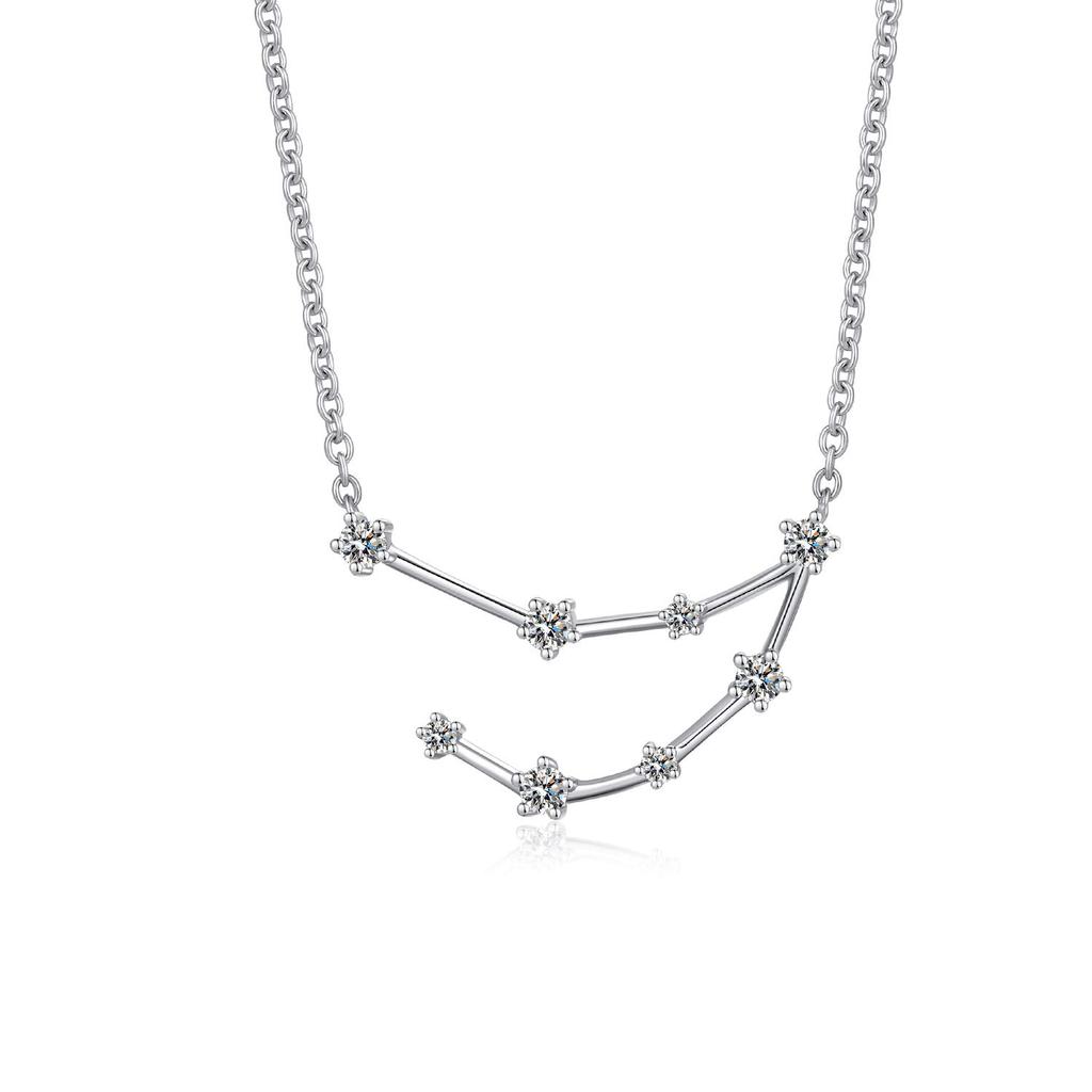 JMI Zodiac Necklace Silver 12 Constellations Constellation Astrology Pendant CZ Star 14K Silver Plated Fine Chain Simple Fine Birth Accessories