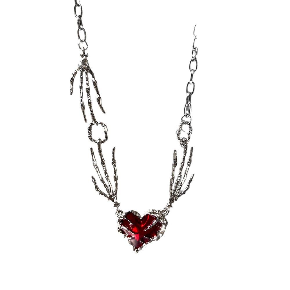Панк Личность Темно-Красная Любовь Подвеска Цепочка На Шею Преувеличенная Ключица Цепочка Призрачный Коготь Личность Темный Ниша Дизайн Ожерелье Женский