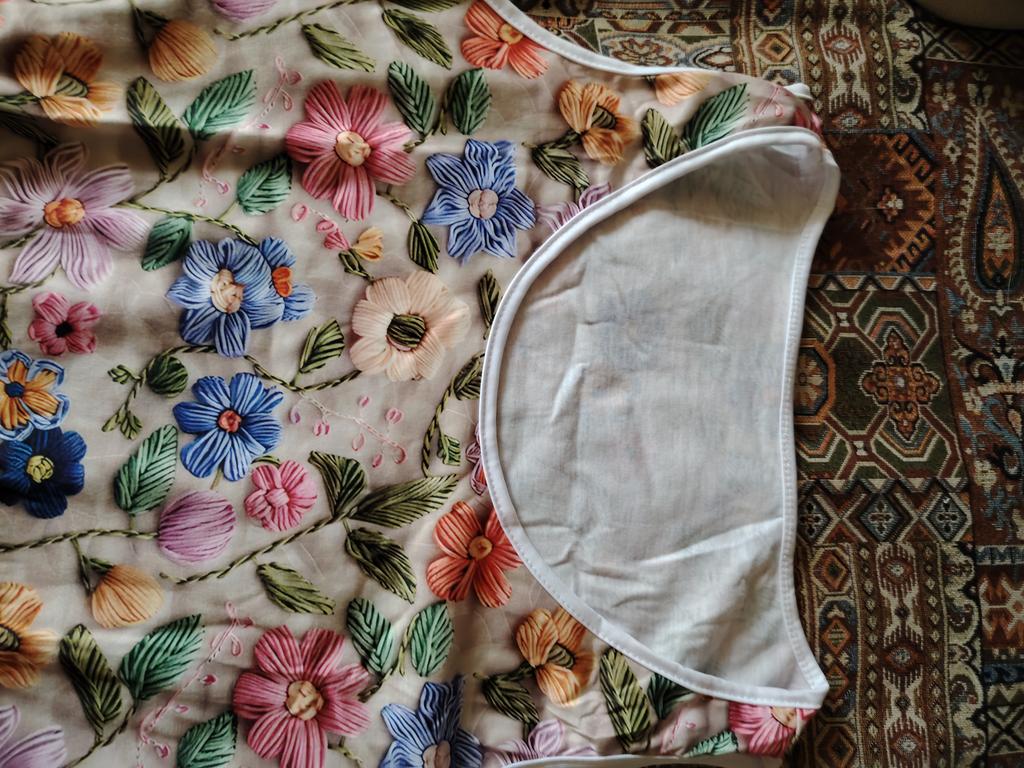 Цвет, качество материала, все хорошо, с размером все хорошо, НО, с этой белой оторочкой горловины и проймы рукав смотрится, как ночнушка