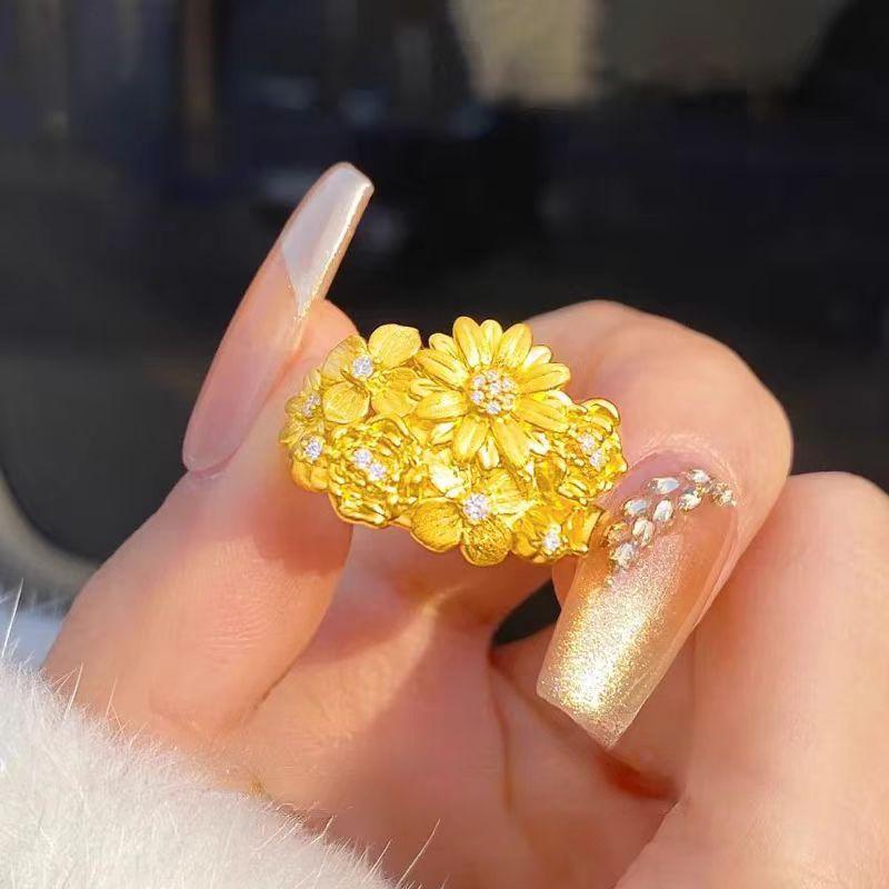 925 Серебряные цветы, похожие на парчу, новое китайское кольцо, женское позолоченное свадебное кольцо в стиле ретро с инкрустацией цирконием