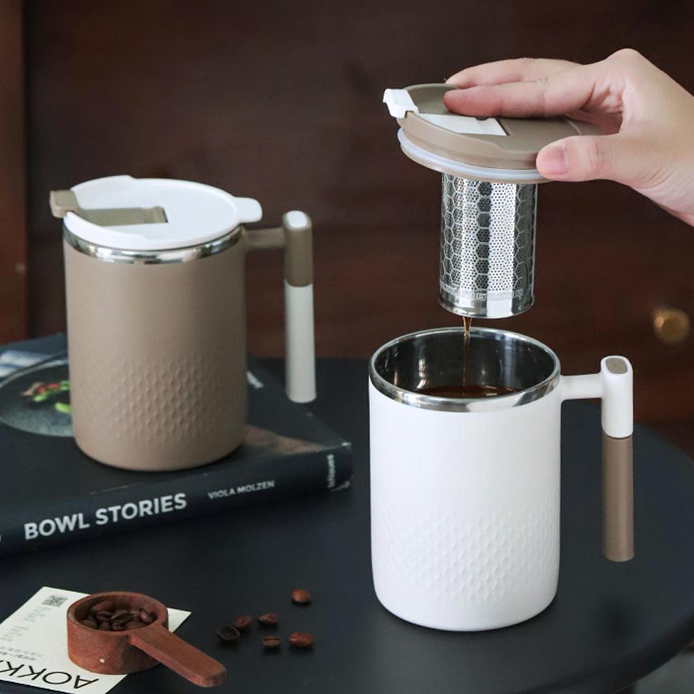 Портативная двухслойная кружка для кофе с защитой от ожогов из нержавеющей стали 304 с ручкой и крышкой, герметичные термокружки — купить товар онлайн с бесплатной доставкой до всему миру!